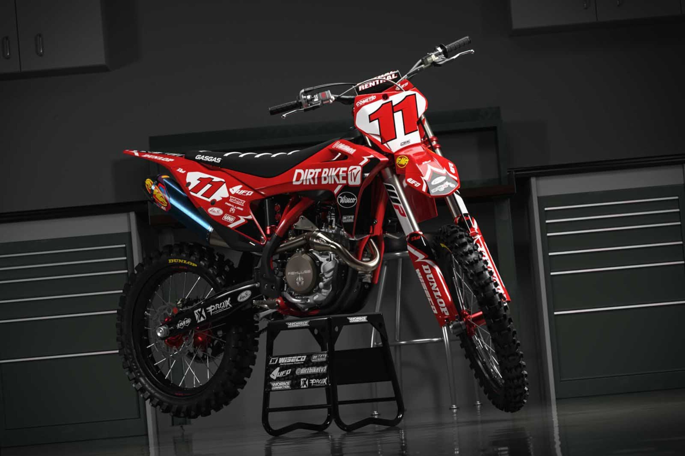 This custom design is available for KTM, Yamaha, Kawasaki, Honda, Husqvarna, Suzuki, GasGas, Beta, Sherco, and more.