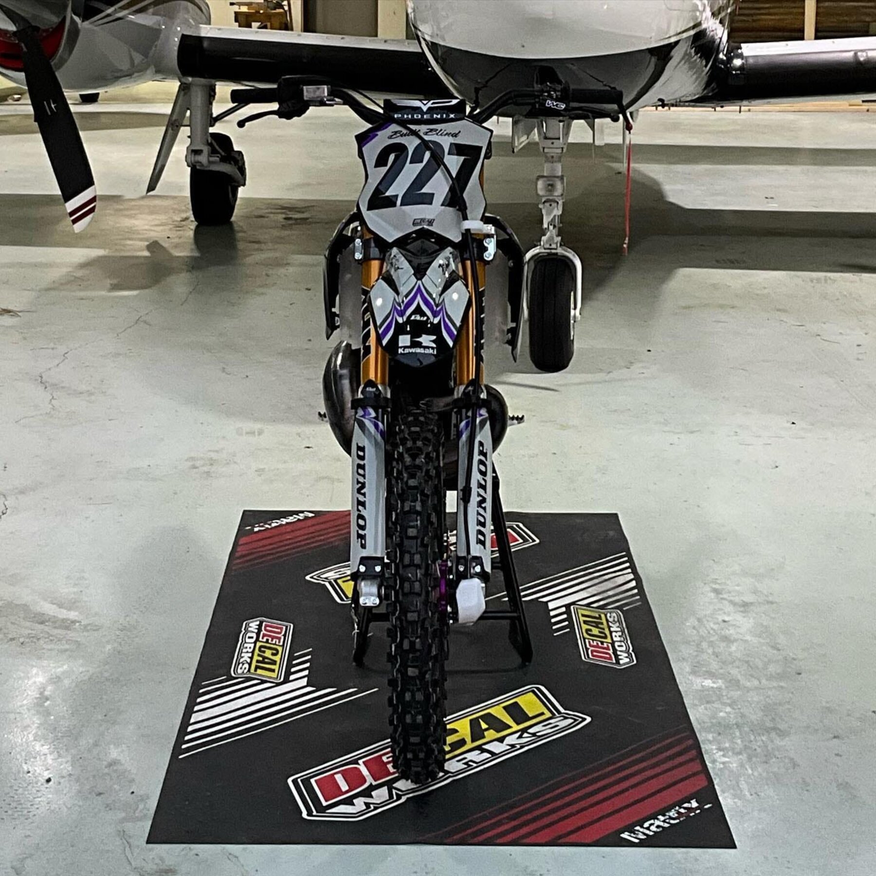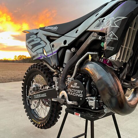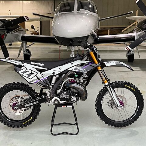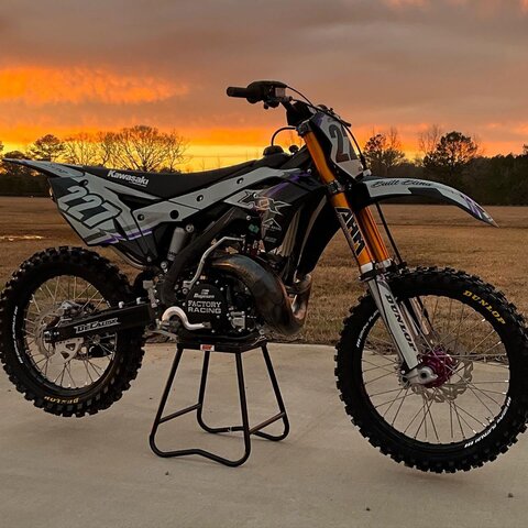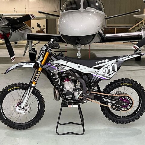 This custom DeCal Works Kawasaki KX Project Bike 227 design is available for KTM, Yamaha, Kawasaki, Honda, Husqvarna, Suzuki, GasGas, Beta, Sherco, and more.