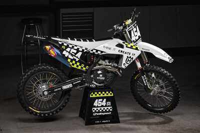 This custom design is available for KTM, Yamaha, Kawasaki, Honda, Husqvarna, Suzuki, GasGas, Beta, Sherco, and more.