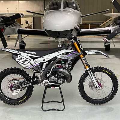 This custom DeCal Works Kawasaki KX Project Bike 227 design is available for KTM, Yamaha, Kawasaki, Honda, Husqvarna, Suzuki, GasGas, Beta, Sherco, and more.