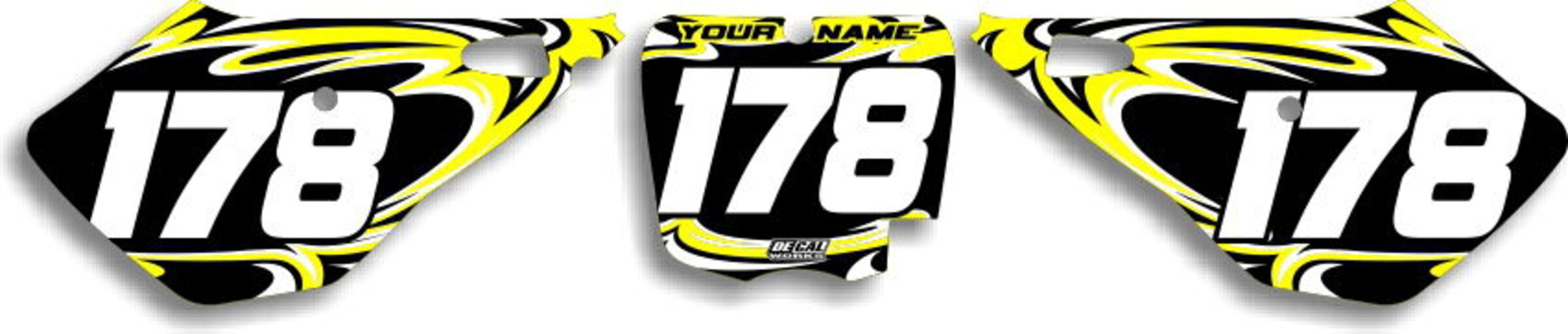 Use the DeCal Works interactive design studio to personalize your very own Cobra Yellow / Black / White T-7 Series Number Plate Graphics Kit. This kit comes with everything you need to make your bike stand out. Your choice of colors, design, and logos.