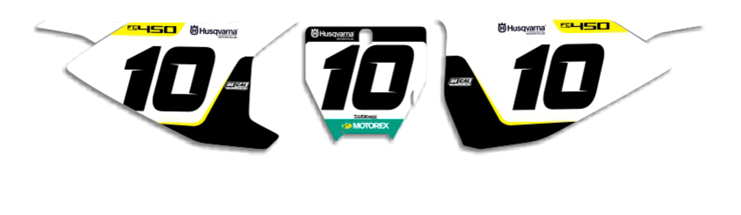Use the DeCal Works interactive design studio to personalize your very own Husqvarna White / Black / Yellow Husqvarna Factory Series 18 Number Plate Graphics Kit. This kit comes with everything you need to make your bike stand out. Your choice of colors, design, and logos.