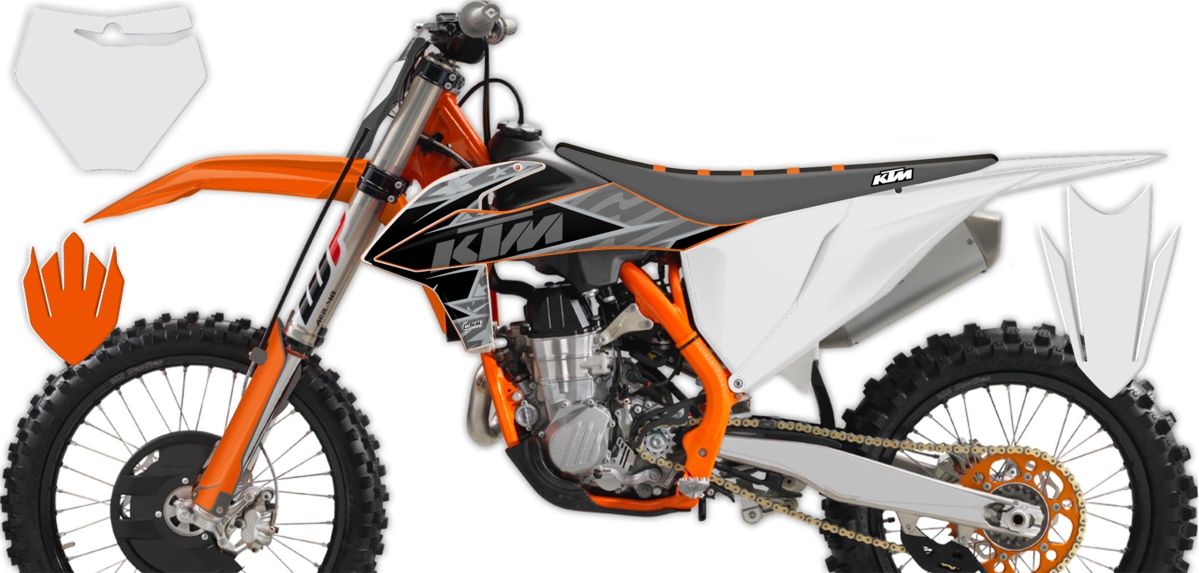 Use the DeCal Works interactive design studio to personalize your very own KTM Grey / Black Stars And Stripes Ready Made Full Graphics Kit. This kit comes with everything you need to make your bike stand out. Your choice of colors, design, and logos.
