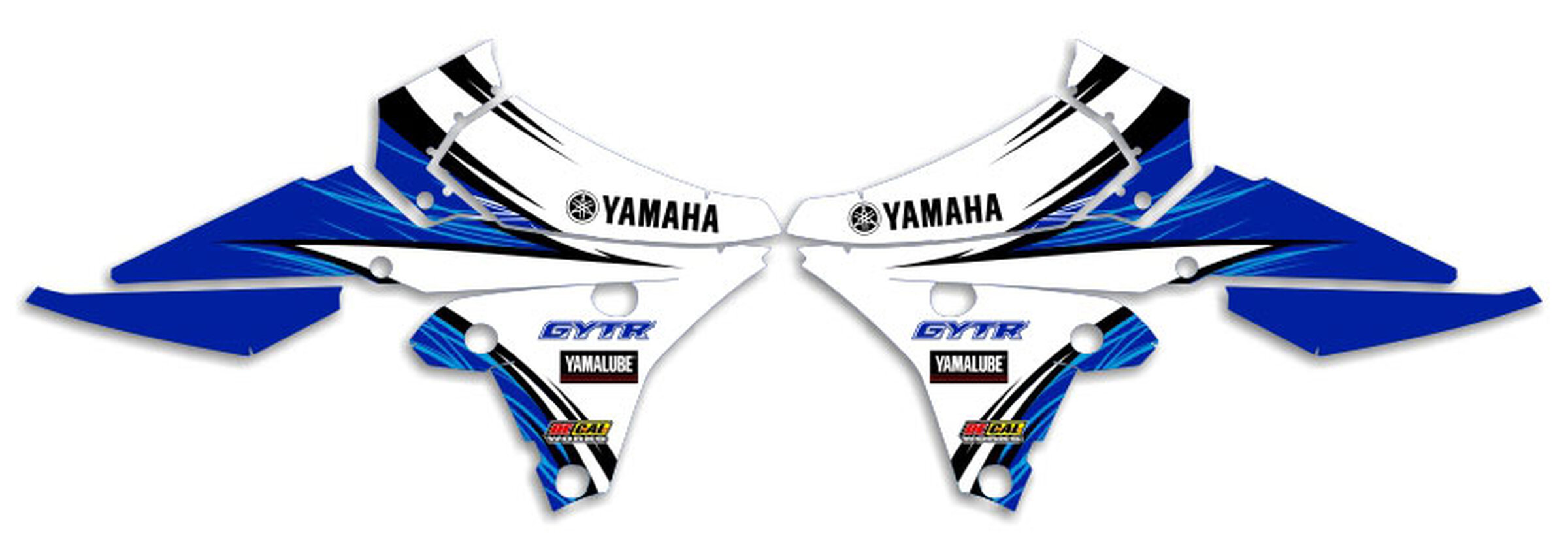 Use the DeCal Works interactive design studio to personalize your very own Yamaha Blue / White / Black T-9 Series Ready Made Complete Graphics Kit. This kit comes with everything you need to make your bike stand out. Your choice of colors, design, and logos.