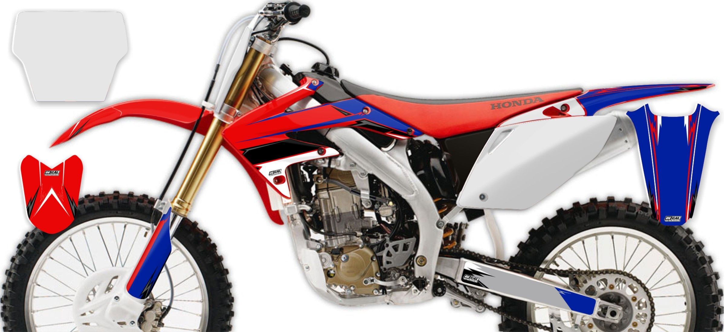 Use the DeCal Works interactive design studio to personalize your very own Honda Red / Blue / Black / Grey / White T-15 Series Semi Custom Full Graphics Kit. This kit comes with everything you need to make your bike stand out. Your choice of colors, design, and logos.