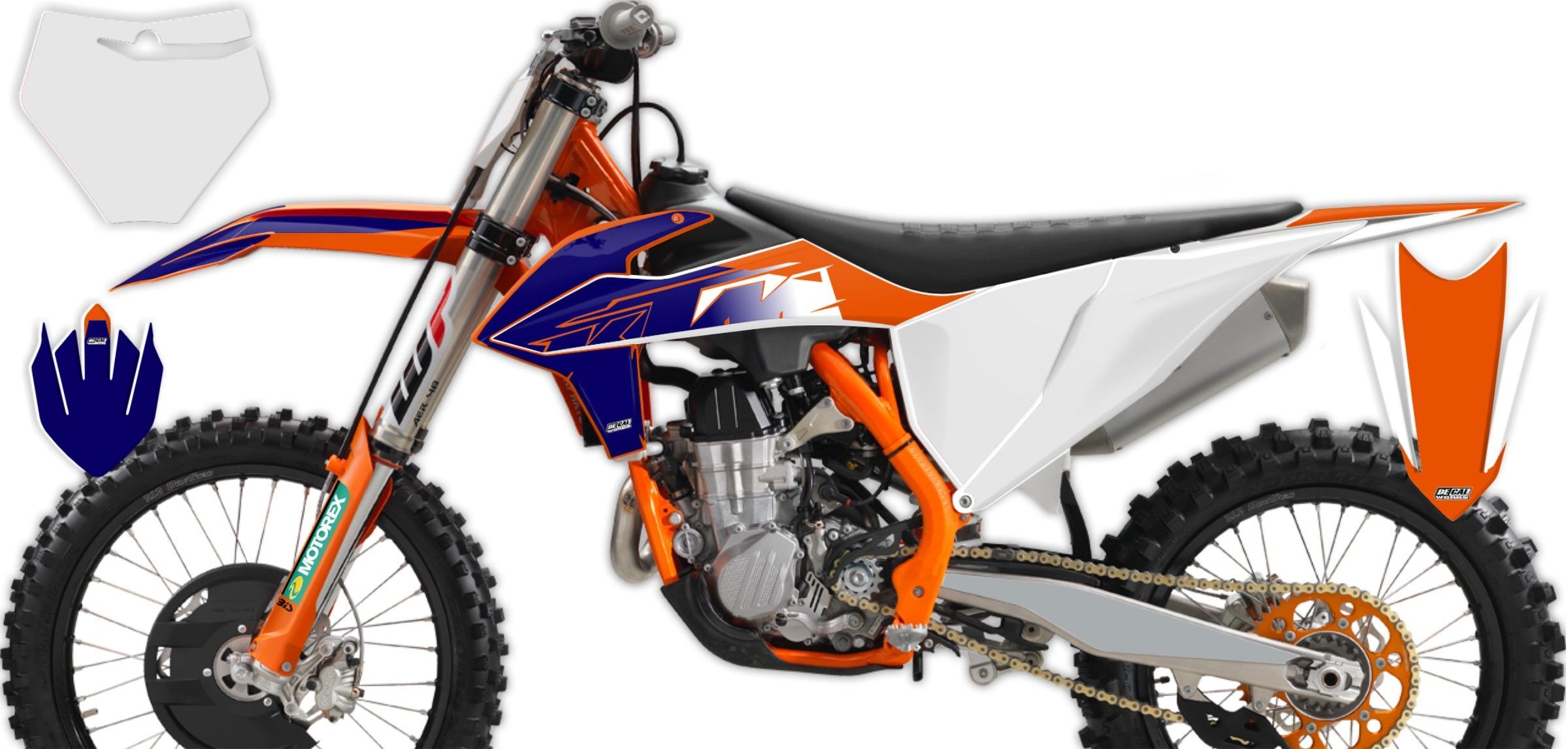 Use the DeCal Works interactive design studio to personalize your very own KTM Orange / Navy / White KTM Factory Series 21 Semi Custom Full Graphics Kit. This kit comes with everything you need to make your bike stand out. Your choice of colors, design, and logos.