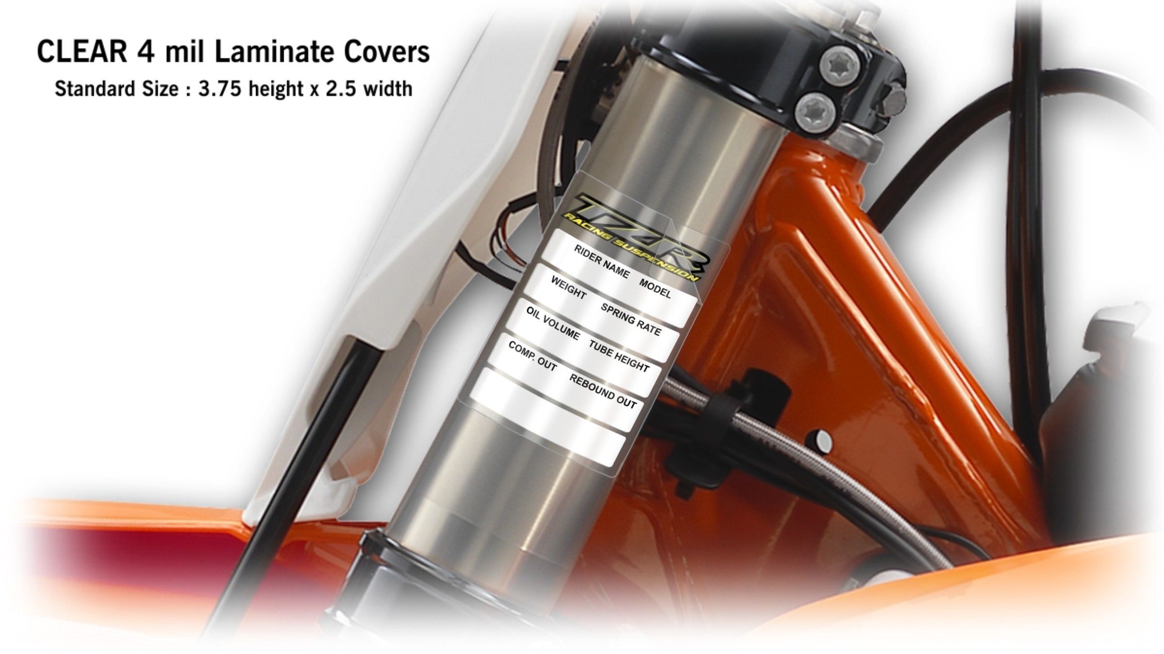 Protect your vital suspension information with Suspension Setting Decal Covers, these covers are a clear 4 mil gloss cover that act as a laminate over your Suspension Setting DeCals. These Suspension Setting Decal Covers come in sets of 25 to fit your Suspension Setting Decals. Our standard size is 3.75 height x 2.5 width.