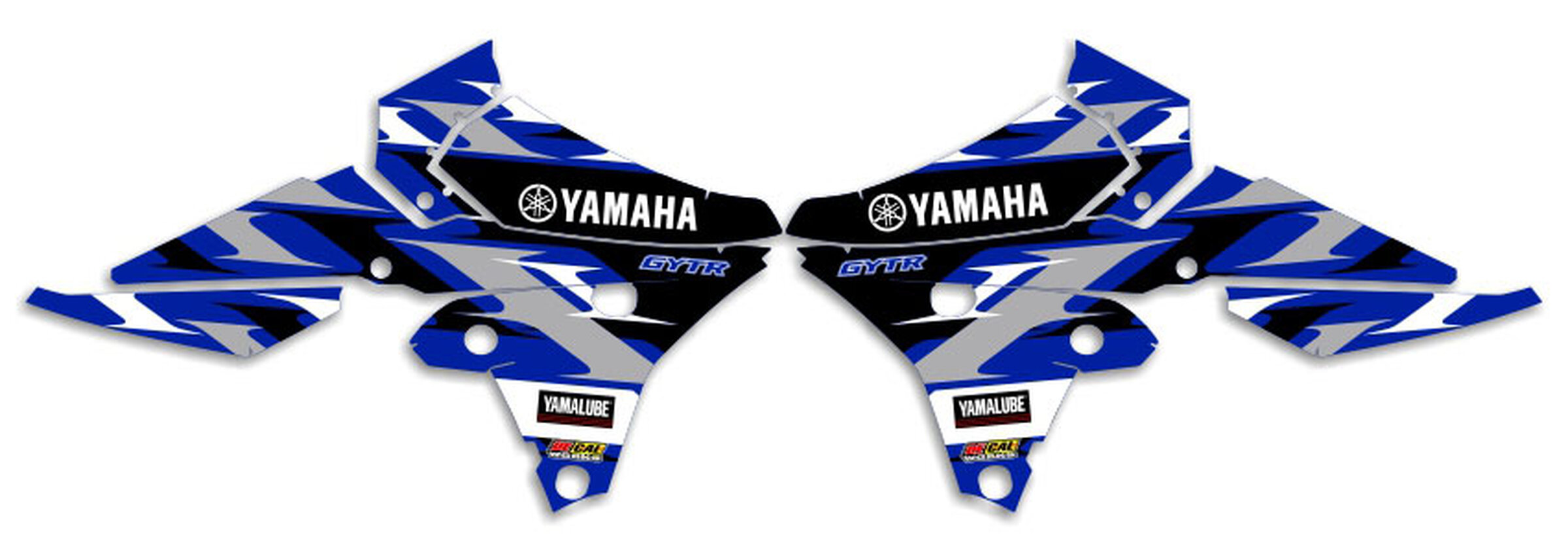 Use the DeCal Works interactive design studio to personalize your very own Yamaha Blue / Black / White T-6 Series Ready Made Complete Graphics Kit. This kit comes with everything you need to make your bike stand out. Your choice of colors, design, and logos.