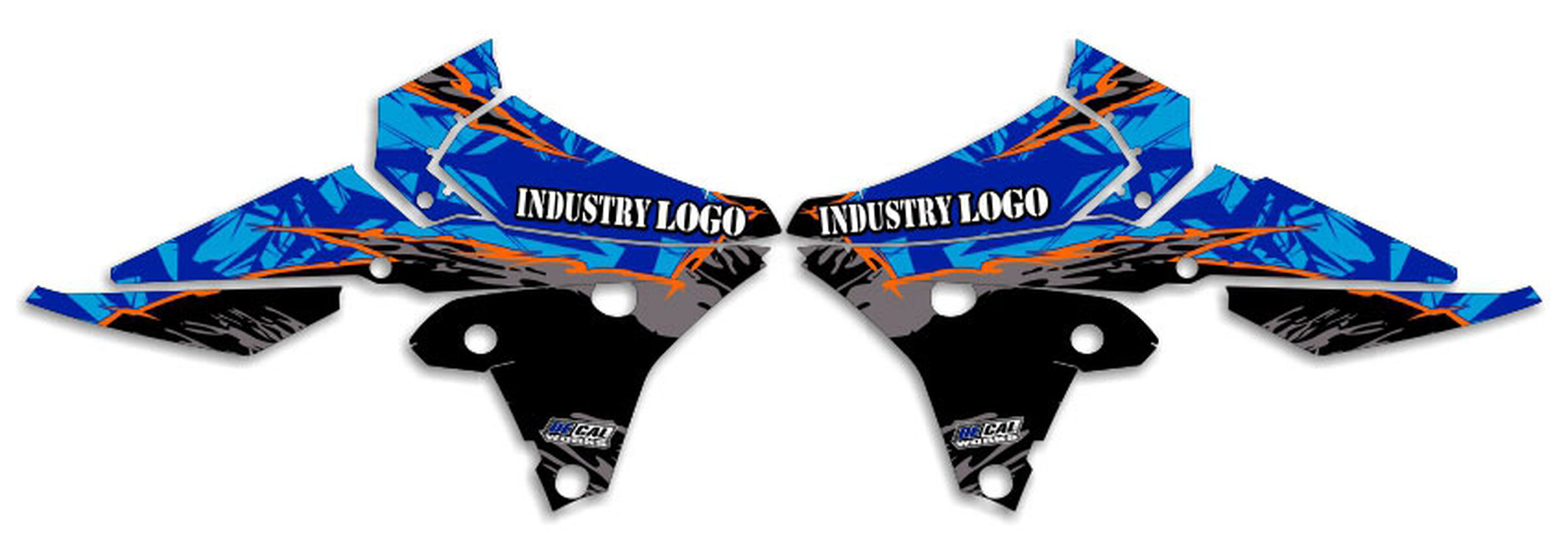 Use the DeCal Works interactive design studio to personalize your very own Yamaha Black / Grey / Blue / Orange T-10 Series Semi Custom Rad Graphics Kit. This kit comes with everything you need to make your bike stand out. Your choice of colors, design, and logos.
