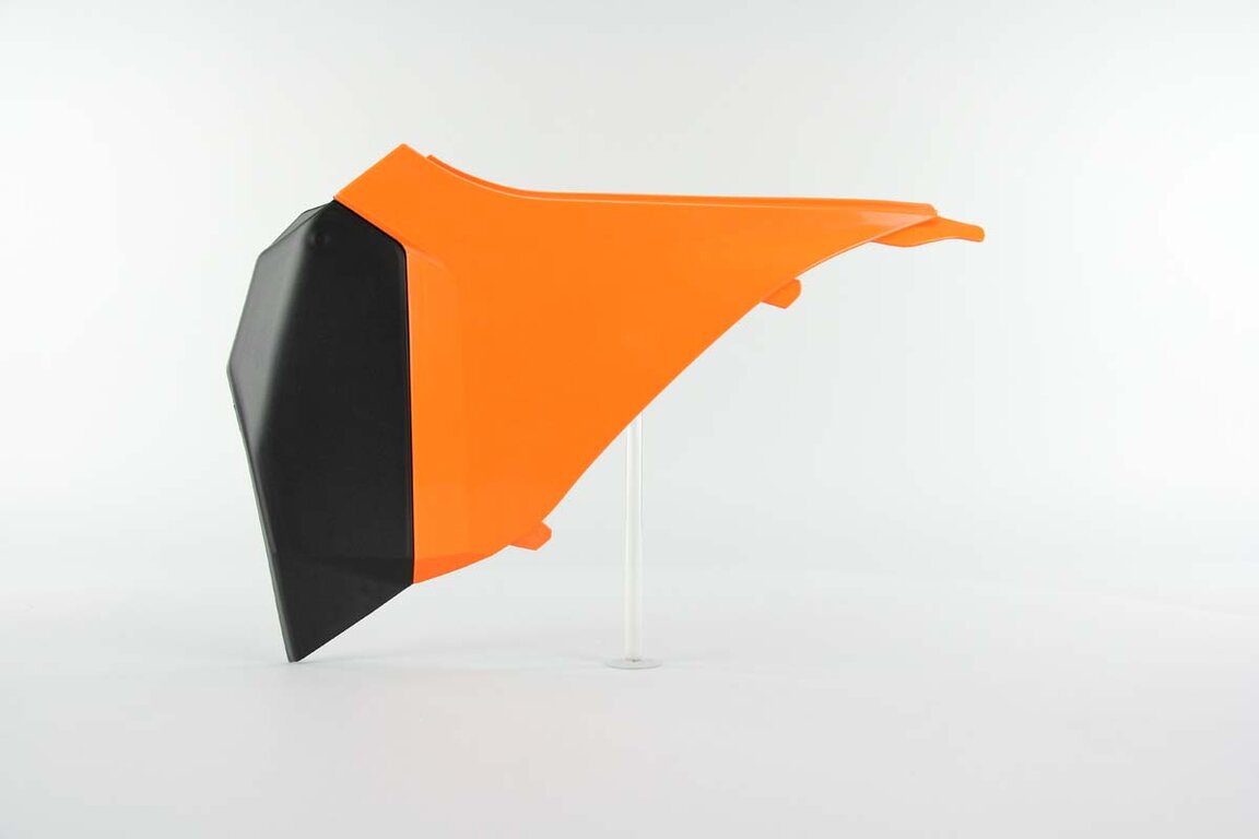 Right Side Polisport Orange Airbox Covers replacement plastics for 11-12 KTM SX, SXF, XC, XCF dirt bikes.