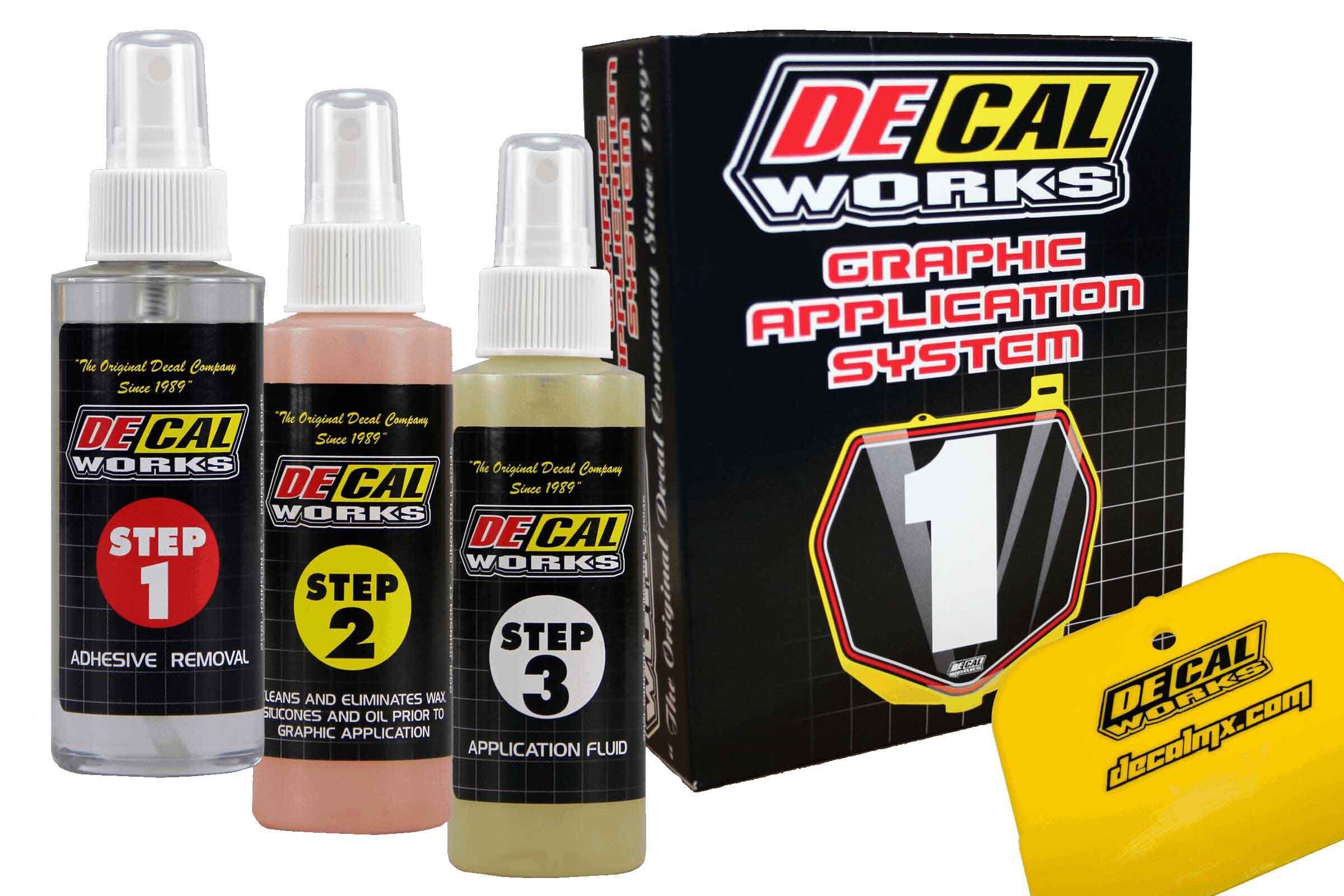 Step 3 Application Fluid is a "Fluid" that allows you to float your decals into place, helping you with the decal installation process.  It is not an adhesive. The adhesive is already on the decals. VIDEO LINK 1 VIDEO LINK 2