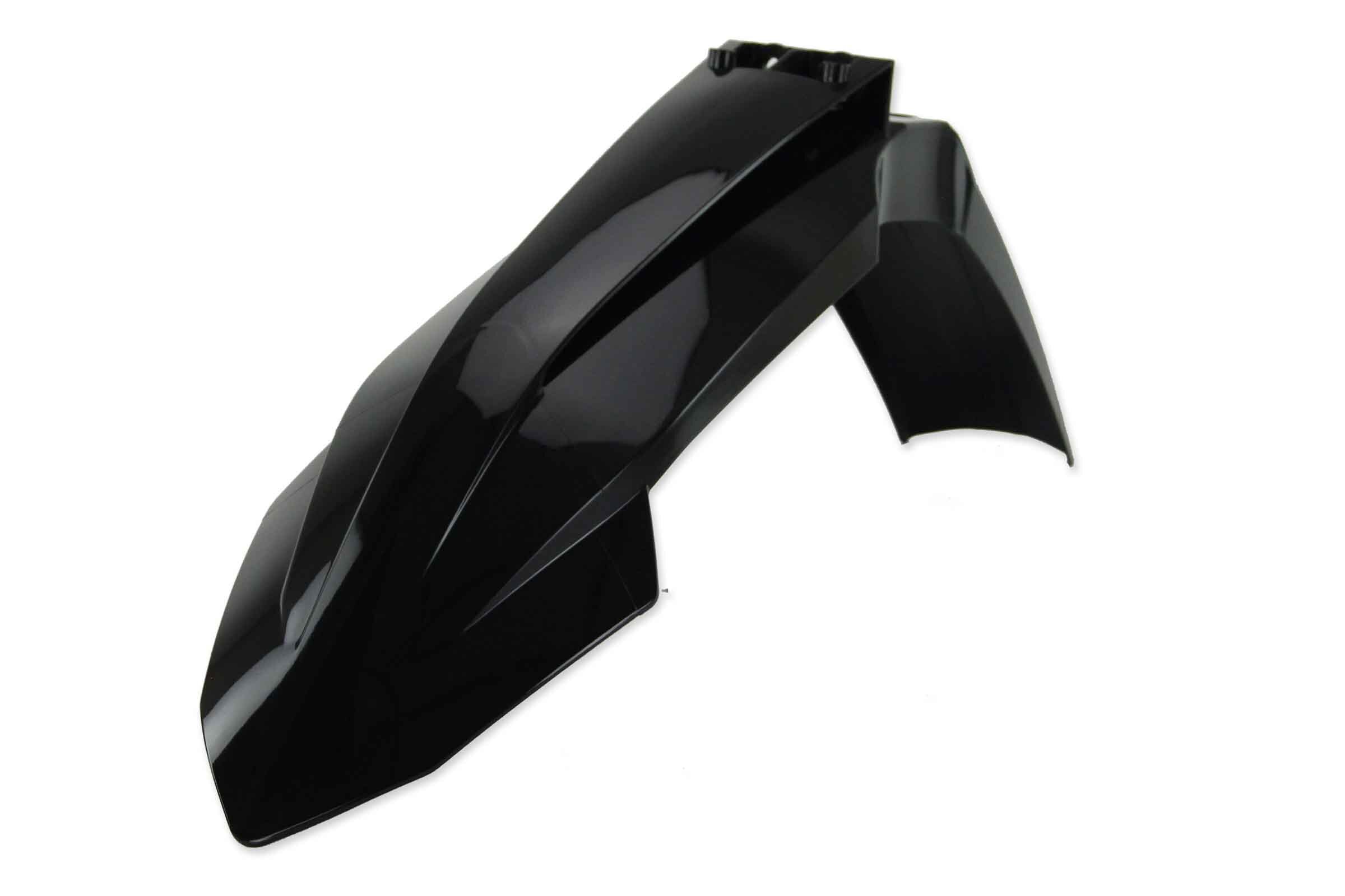 When your original dirt bike plastics need to be replaced, the UFO Black Front Fender replacement plastics are an affordable, more durable option and are built to exceed original specifications.