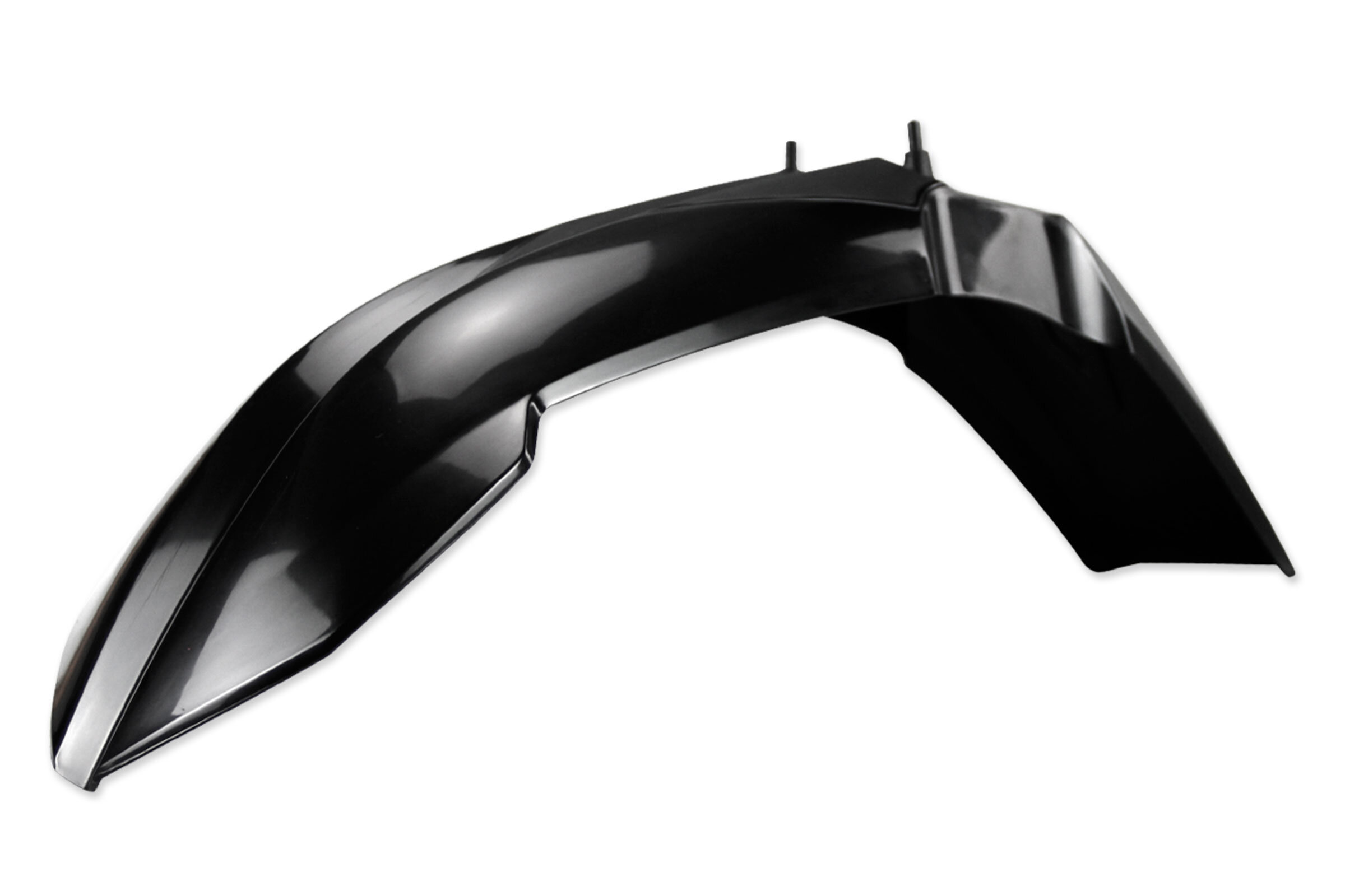 When your original dirt bike plastics need to be replaced, the UFO Black Front Fender replacement plastics are an affordable, more durable option and are built to exceed original specifications.