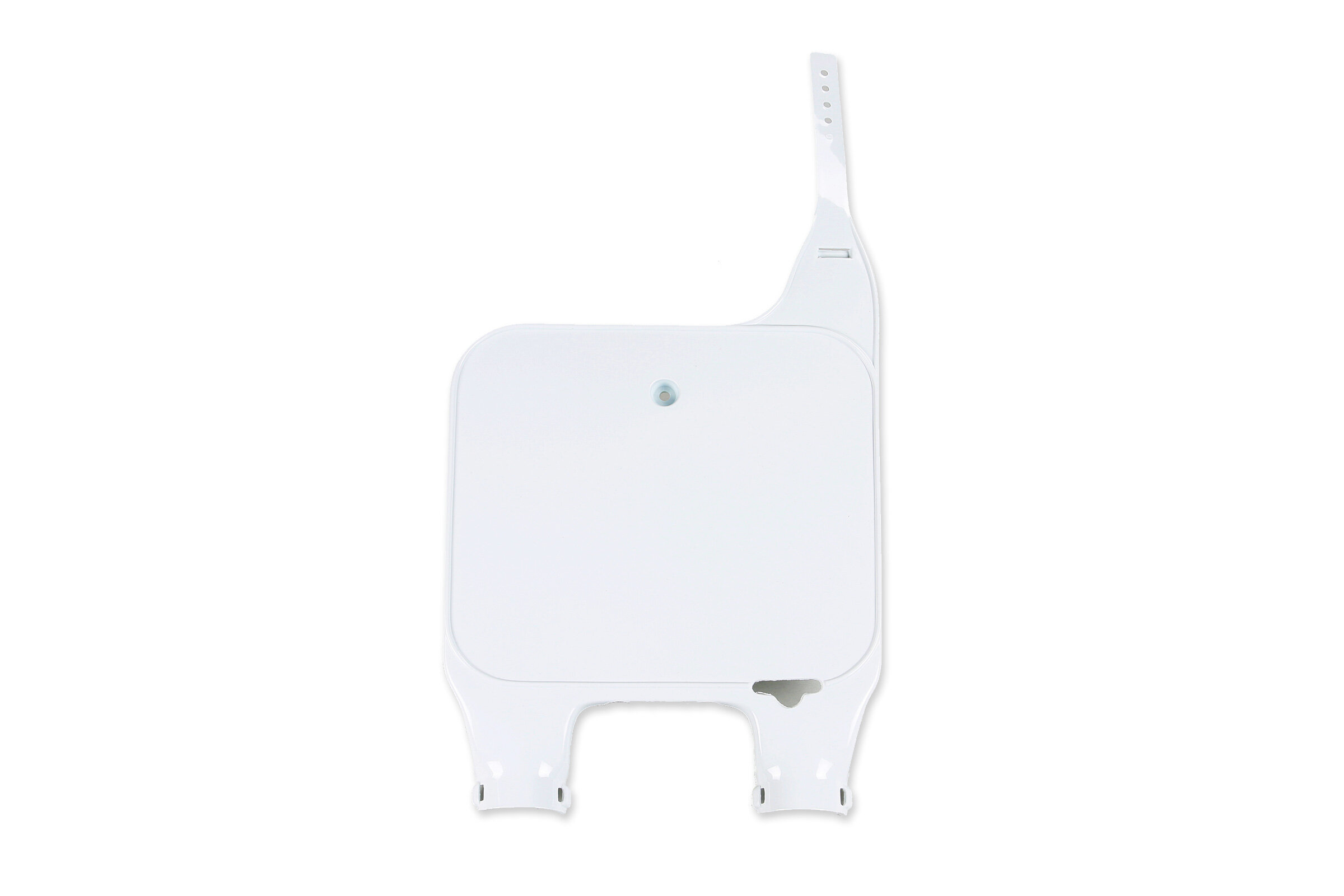 When your original dirt bike plastics need to be replaced, the UFO White Front Number Plate replacement plastics are an affordable, more durable option and are built to exceed original specifications.