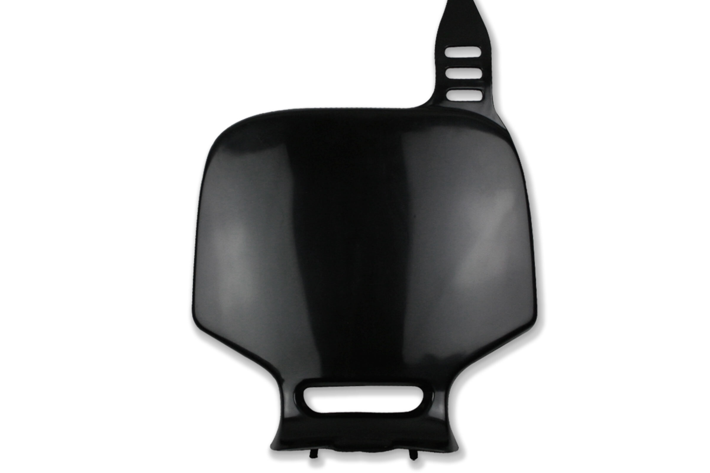 When your original dirt bike plastics need to be replaced, the UFO Black Front Number Plate replacement plastics are an affordable, more durable option and are built to exceed original specifications.