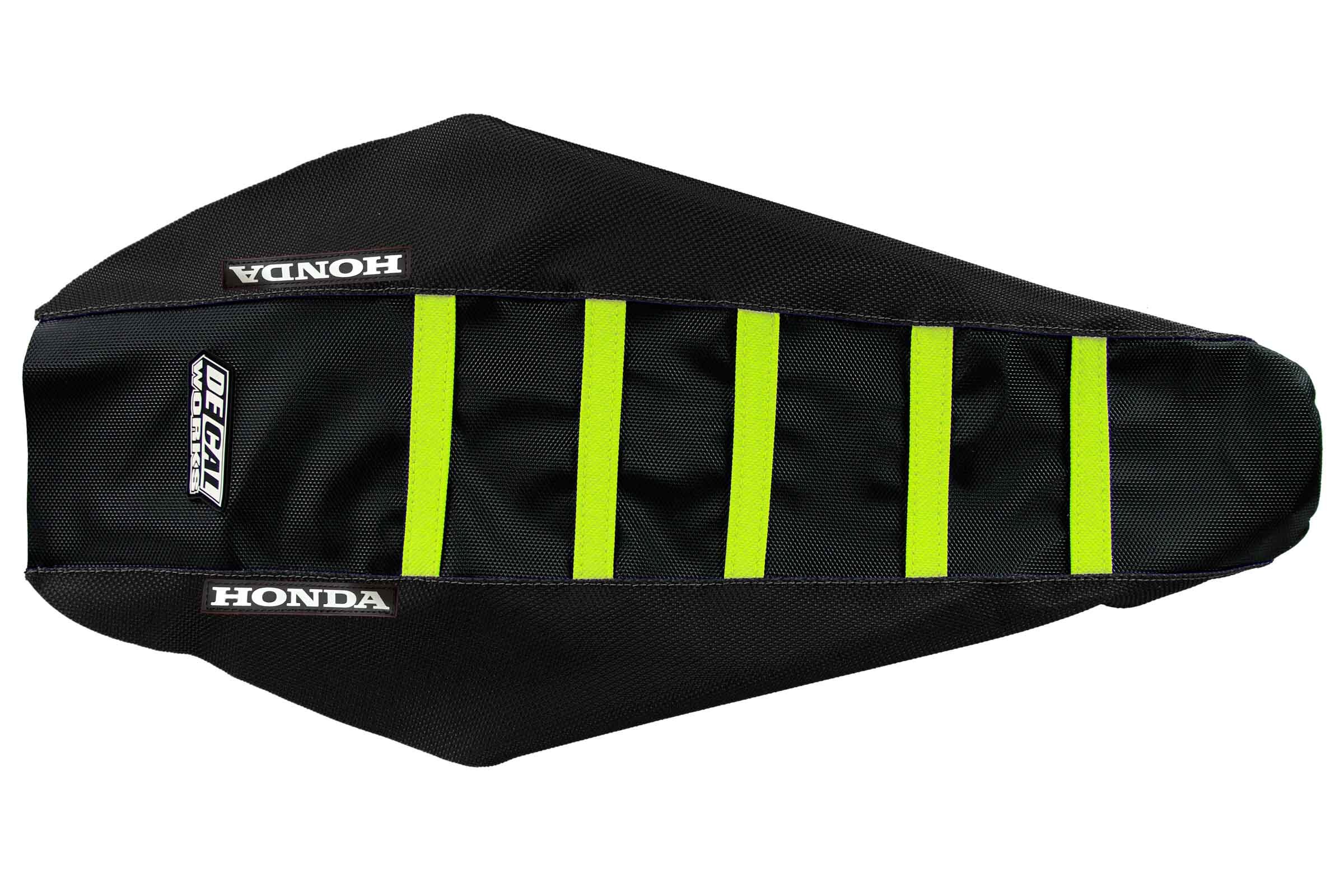 The DeCal Works Black, Flo Yellow seat cover is the perfect option to replace your OEM seat cover. This performance part will enhance comfort when riding and it has an extraordinary grip and wear resistance and is built to exceed original specifications.