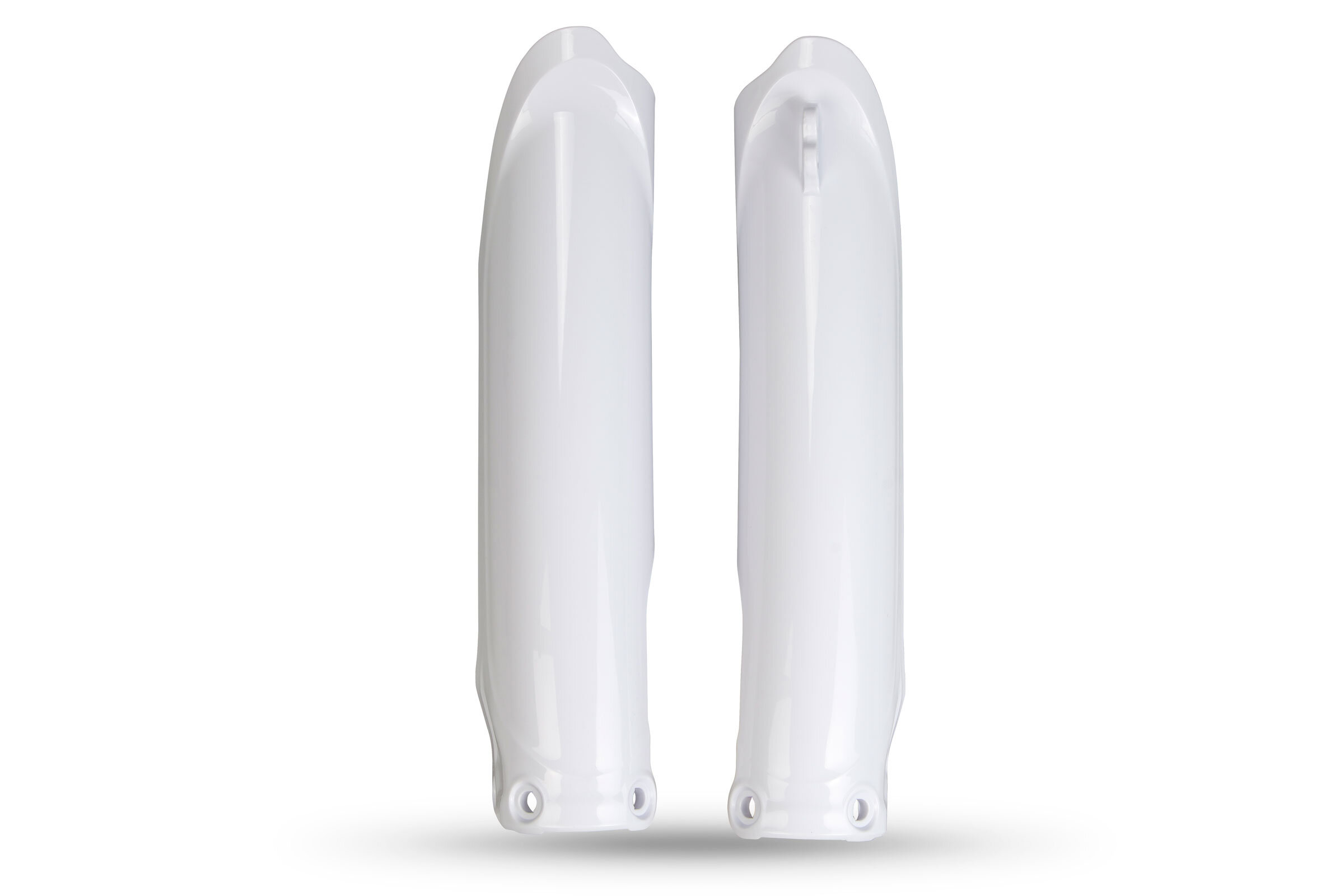 When your original dirt bike plastics need to be replaced, the UFO White Lower Fork Guards replacement plastics are an affordable, more durable option and are built to exceed original specifications.