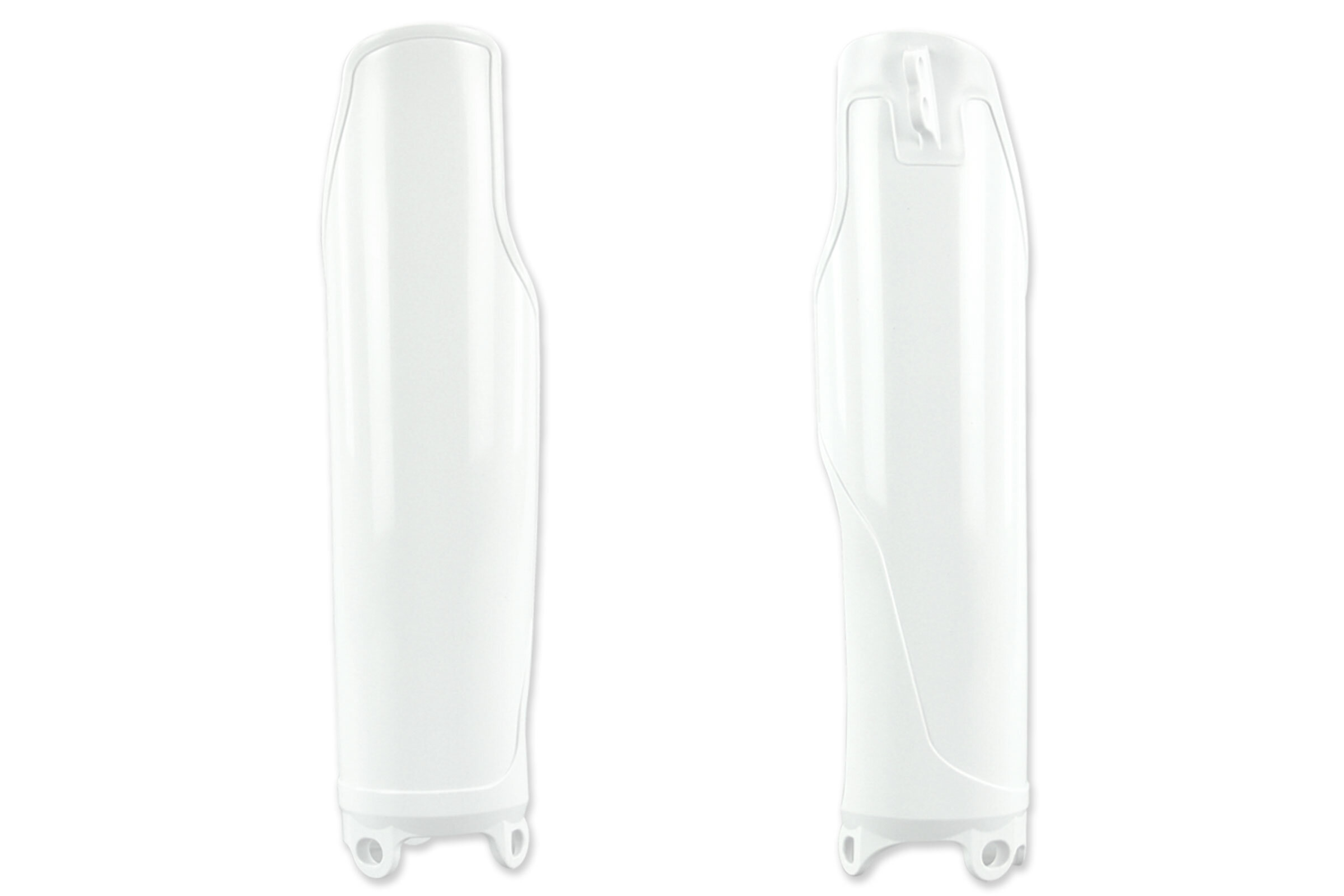 When your original dirt bike plastics need to be replaced, the UFO White Lower Fork Guards replacement plastics are an affordable, more durable option and are built to exceed original specifications.