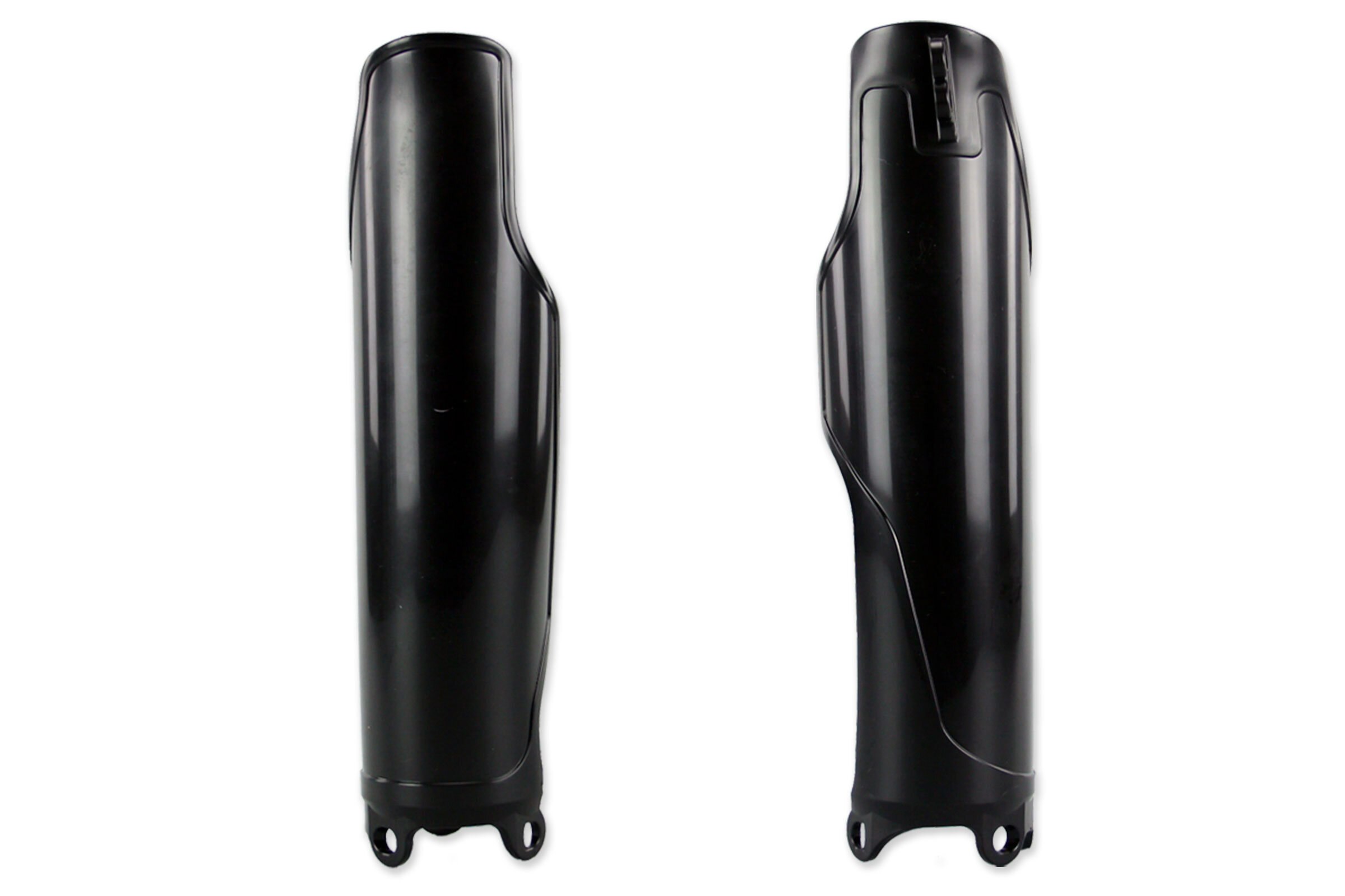 When your original dirt bike plastics need to be replaced, the UFO Black Lower Fork Guards replacement plastics are an affordable, more durable option and are built to exceed original specifications.