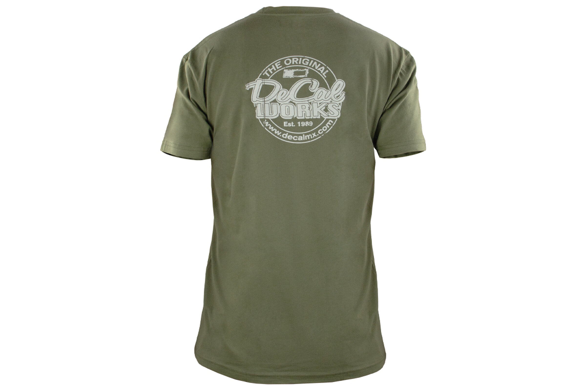 DeCal Works Large Original Olive T-Shirt with White Logo