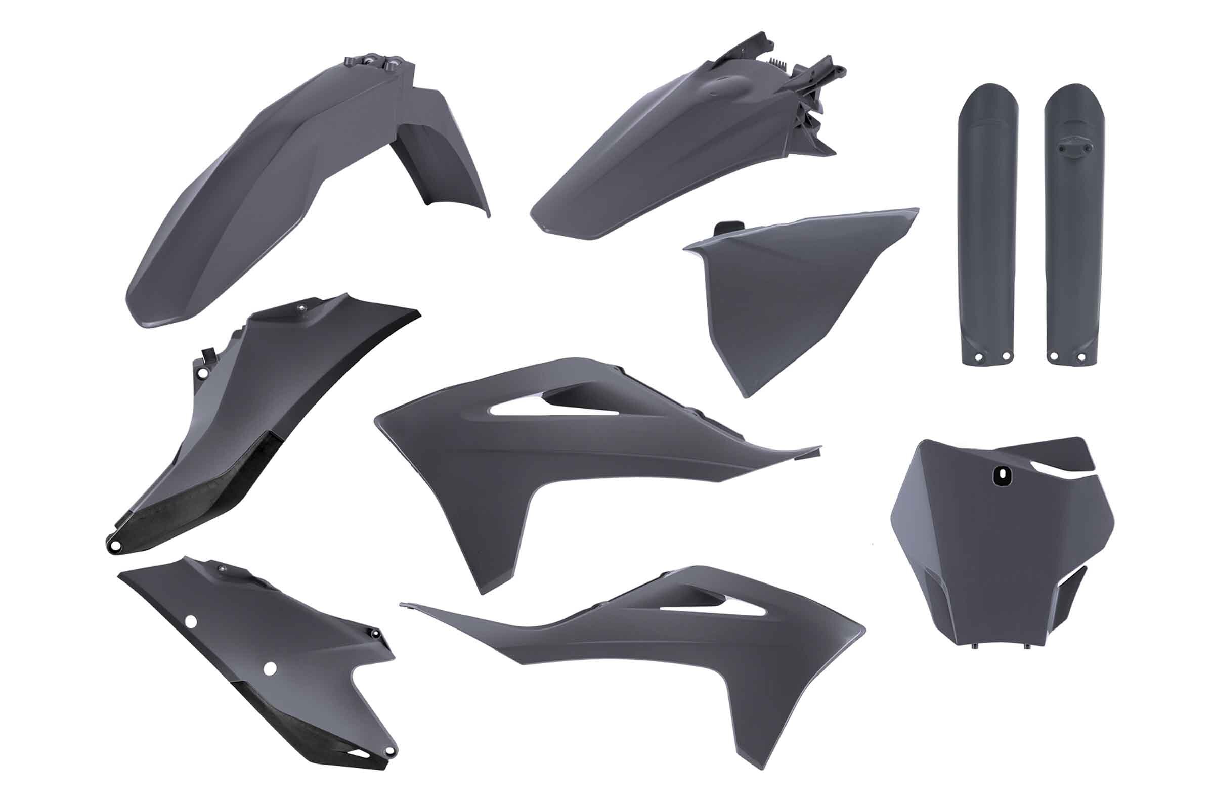 Upgrade your bike's appearance and performance with Grey Plastic Kit with Lower Forks replacement plastic. Ride confidently, knowing you've got a reliable and stylish Plastic Kit with Lower Forks that can withstand the toughest off-road adventures on or off the race track!