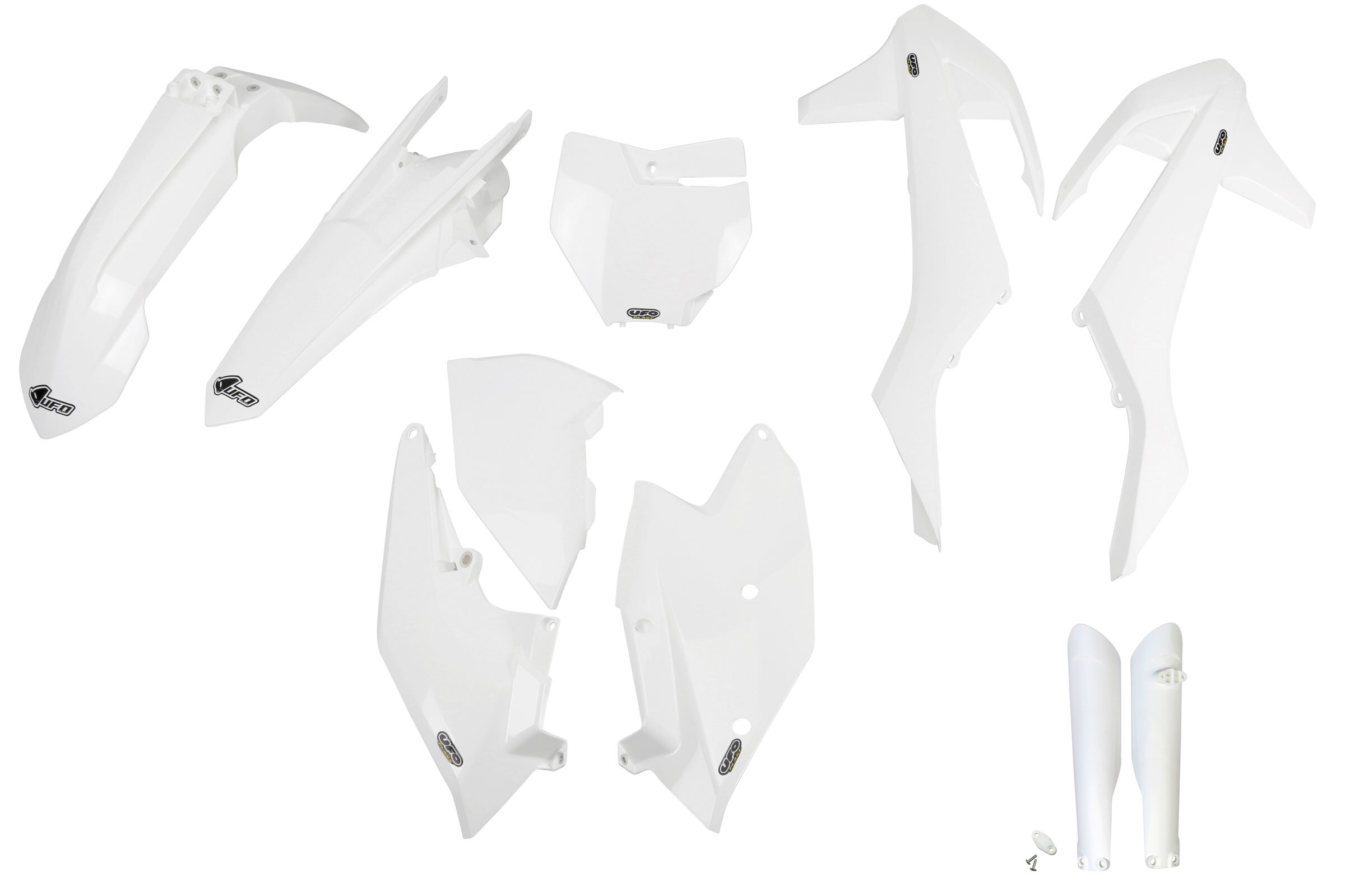 When your original dirt bike plastics need to be replaced, the UFO White Plastic Kit replacement plastics are an affordable, more durable option and are built to exceed original specifications.