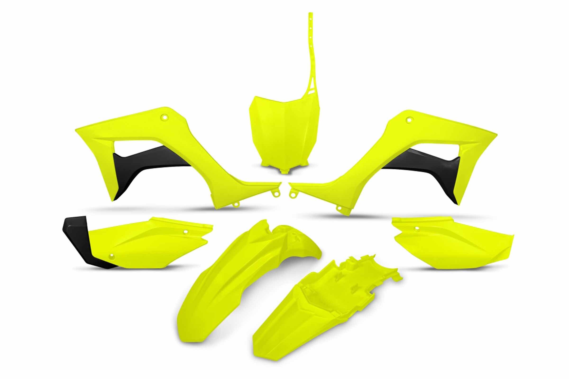 When your original dirt bike plastics need to be replaced, the UFO Flo Yellow Plastic Kit replacement plastics are an affordable, more durable option and are built to exceed original specifications.