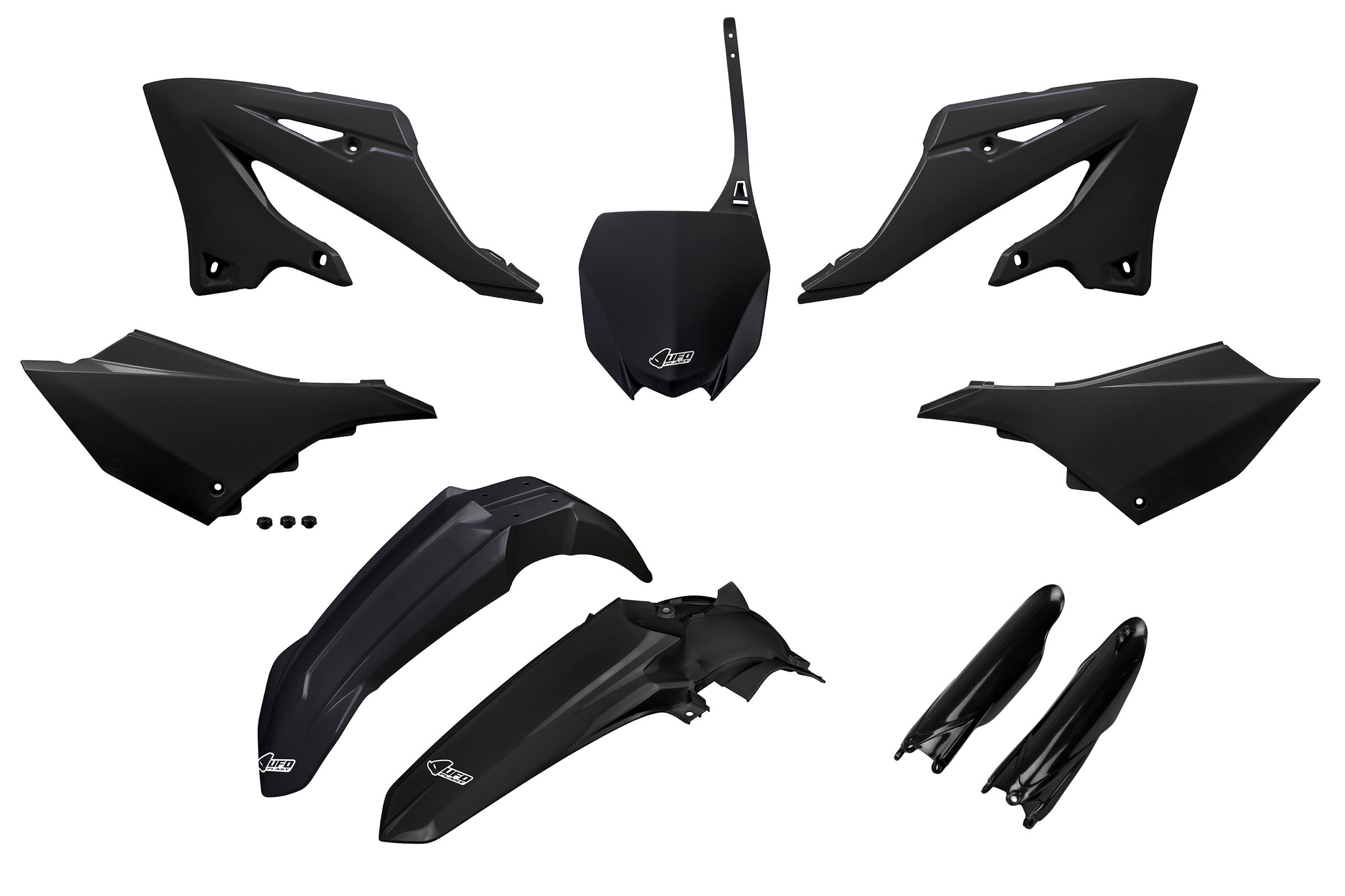 When your original dirt bike plastics need to be replaced, the UFO Black Plastic Kit replacement plastics are an affordable, more durable option and are built to exceed original specifications.