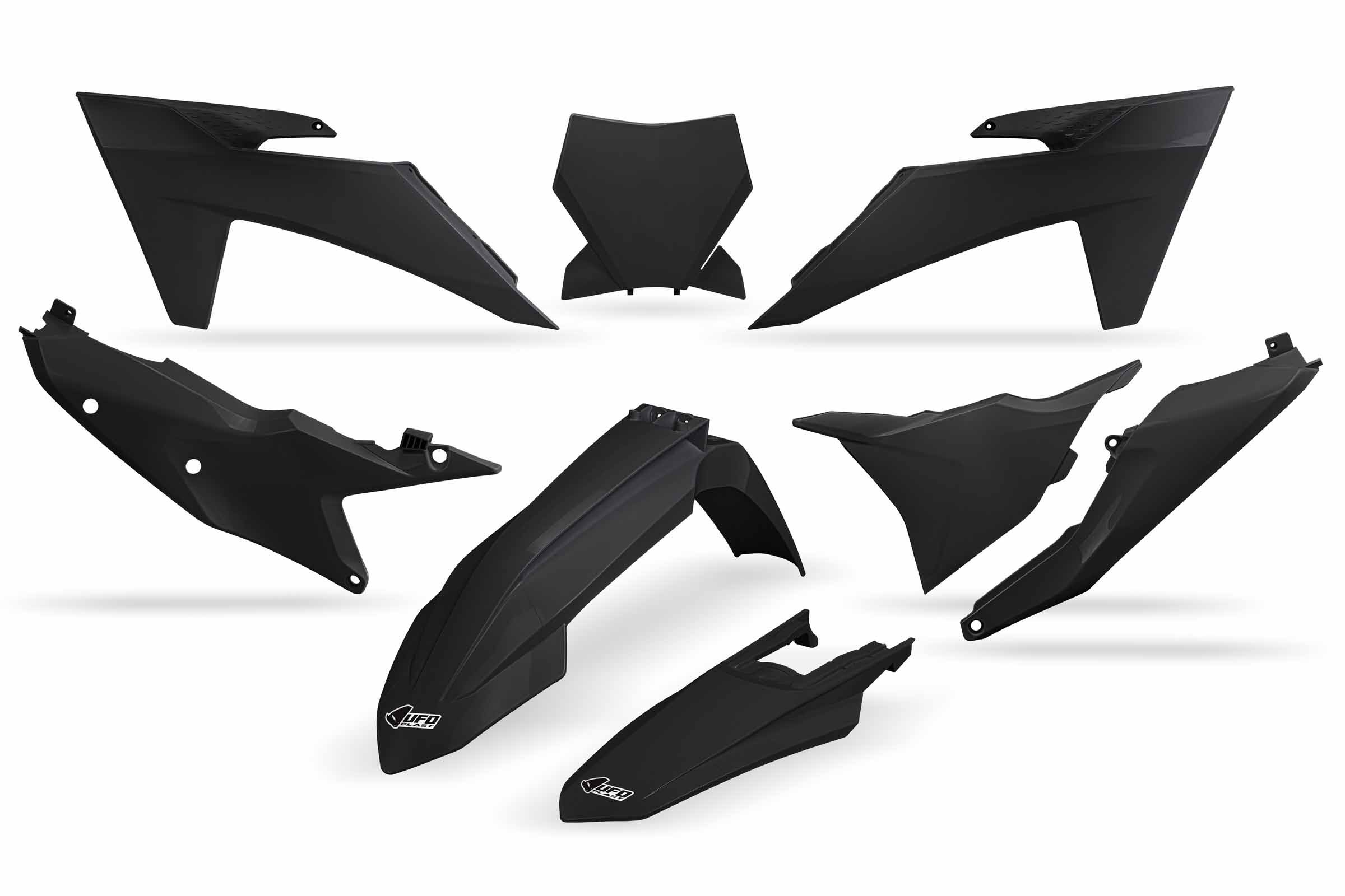 When your original dirt bike plastics need to be replaced, the UFO Black Plastic Kit replacement plastics are an affordable, more durable option and are built to exceed original specifications.