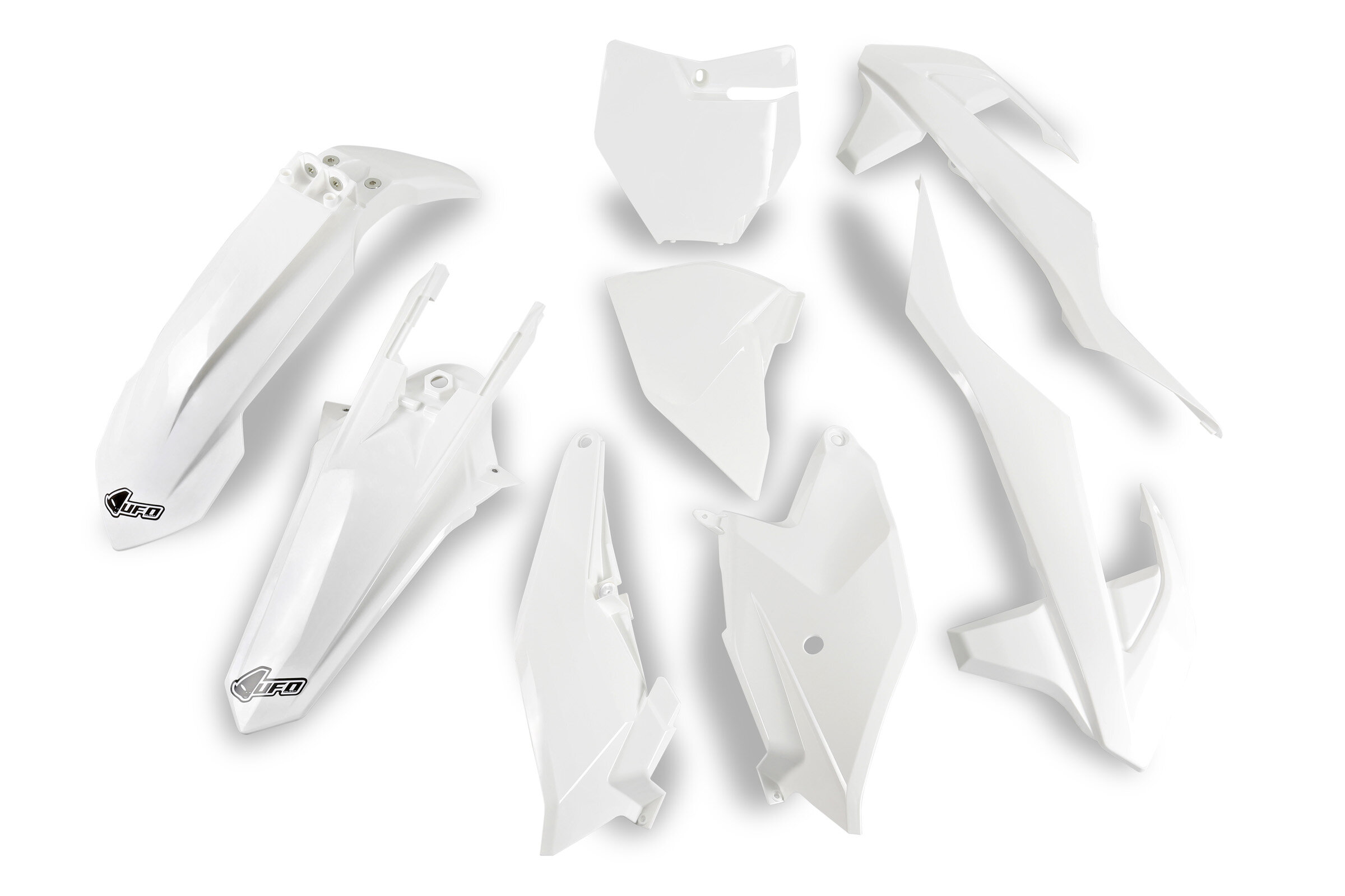 When your original dirt bike plastics need to be replaced, the UFO White Plastic Kit replacement plastics are an affordable, more durable option and are built to exceed original specifications.