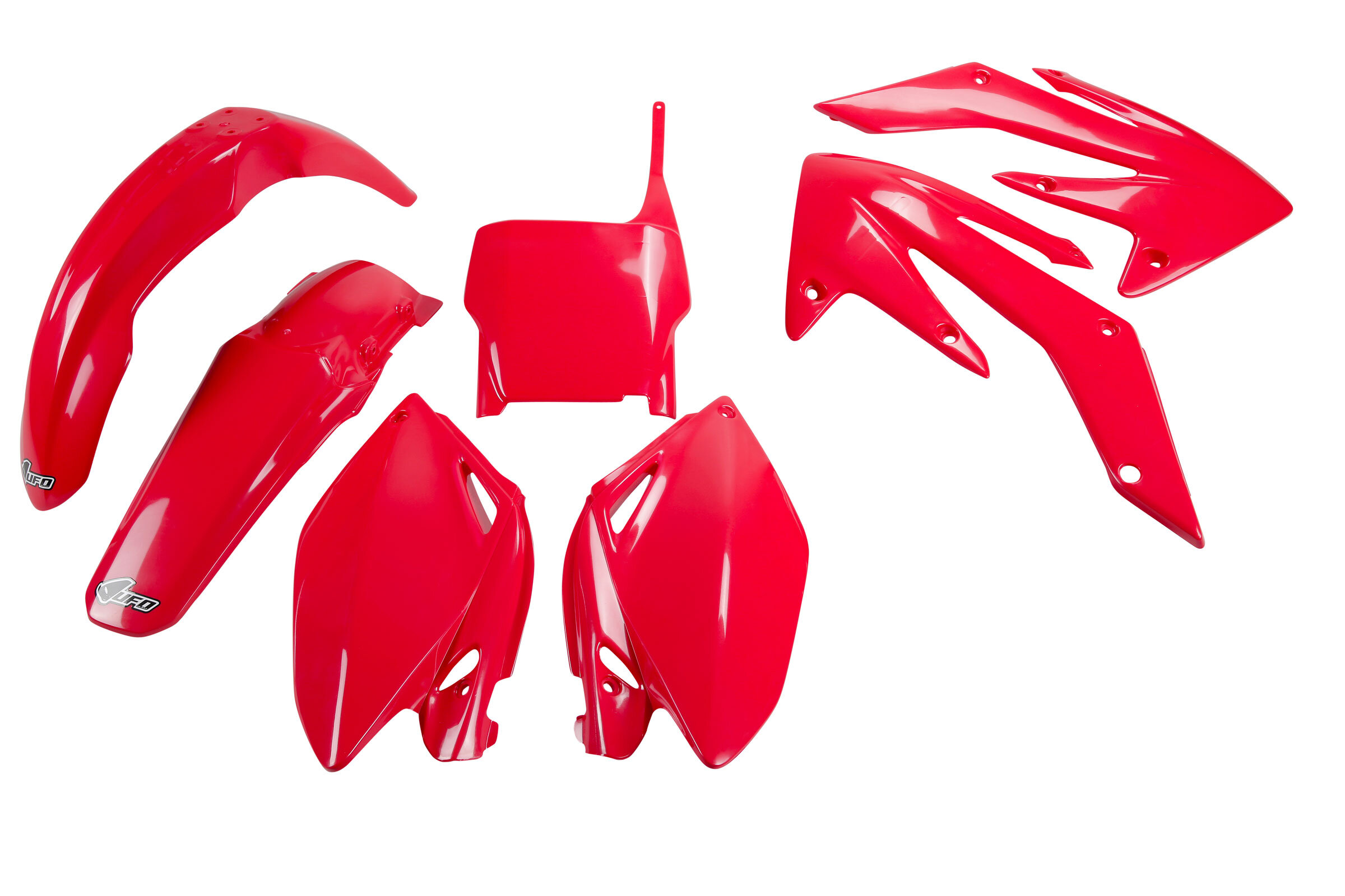 When your original dirt bike plastics need to be replaced, the UFO Red Plastic Kit replacement plastics are an affordable, more durable option and are built to exceed original specifications.