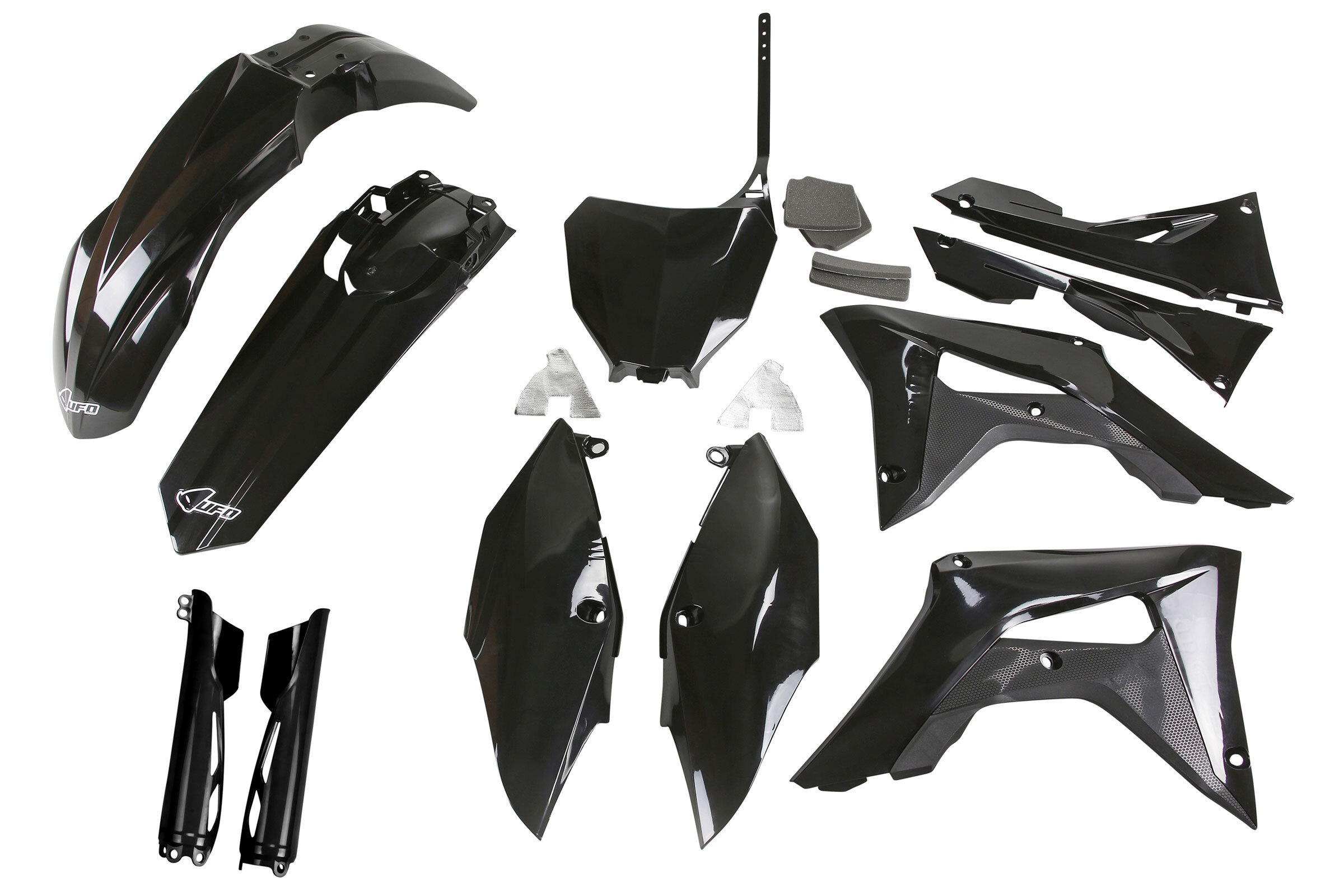 When your original dirt bike plastics need to be replaced, the UFO Black Plastic Kit replacement plastics are an affordable, more durable option and are built to exceed original specifications.