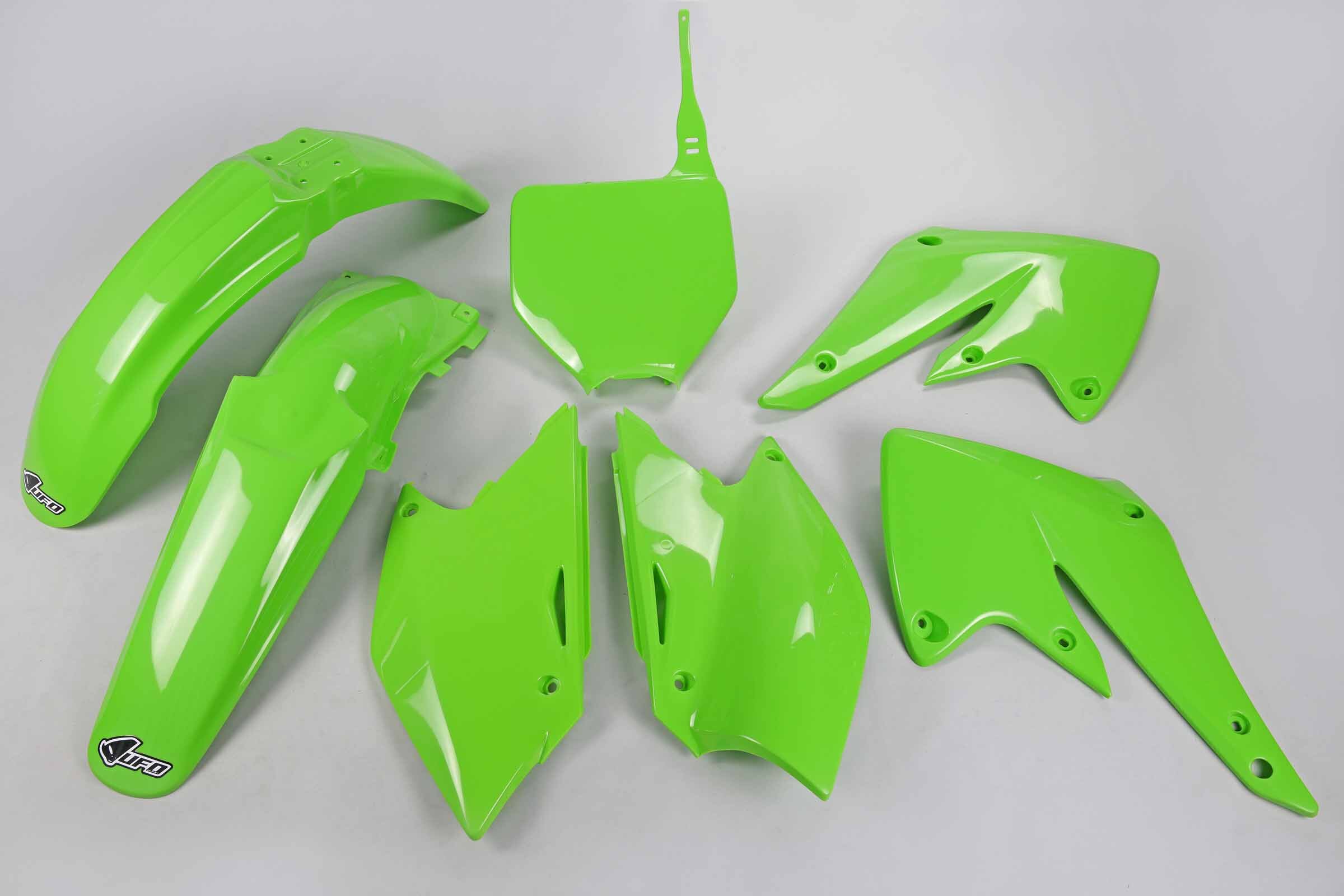 When your original dirt bike plastics need to be replaced, the UFO Green Plastic Kit replacement plastics are an affordable, more durable option and are built to exceed original specifications.
