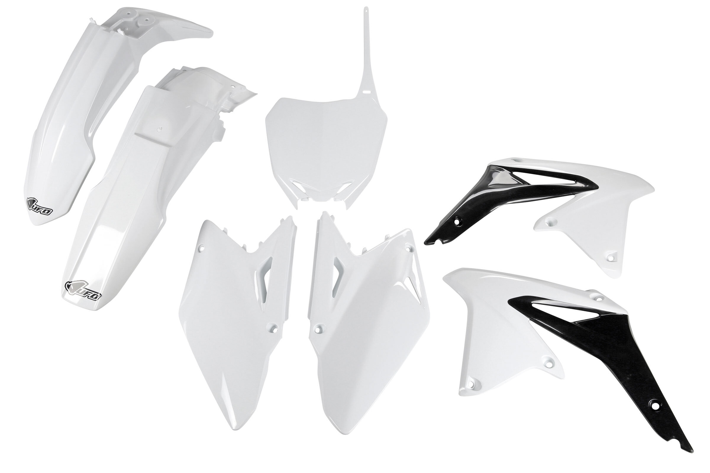 When your original dirt bike plastics need to be replaced, the UFO White Plastic Kit replacement plastics are an affordable, more durable option and are built to exceed original specifications.