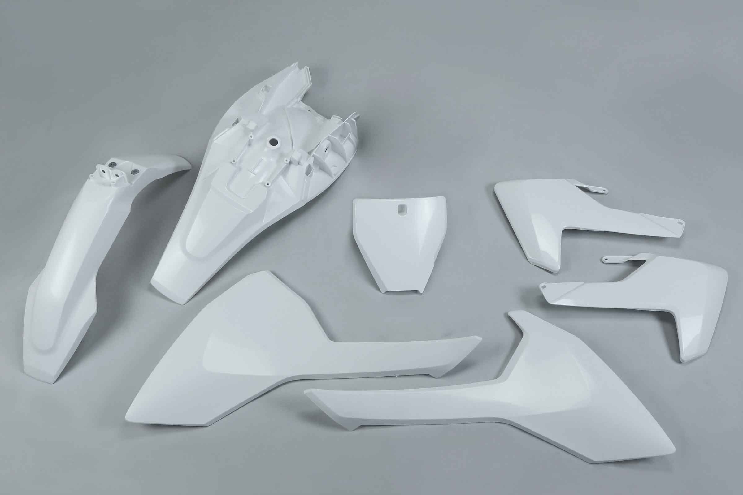When your original dirt bike plastics need to be replaced, the UFO White Plastic Kit replacement plastics are an affordable, more durable option and are built to exceed original specifications.