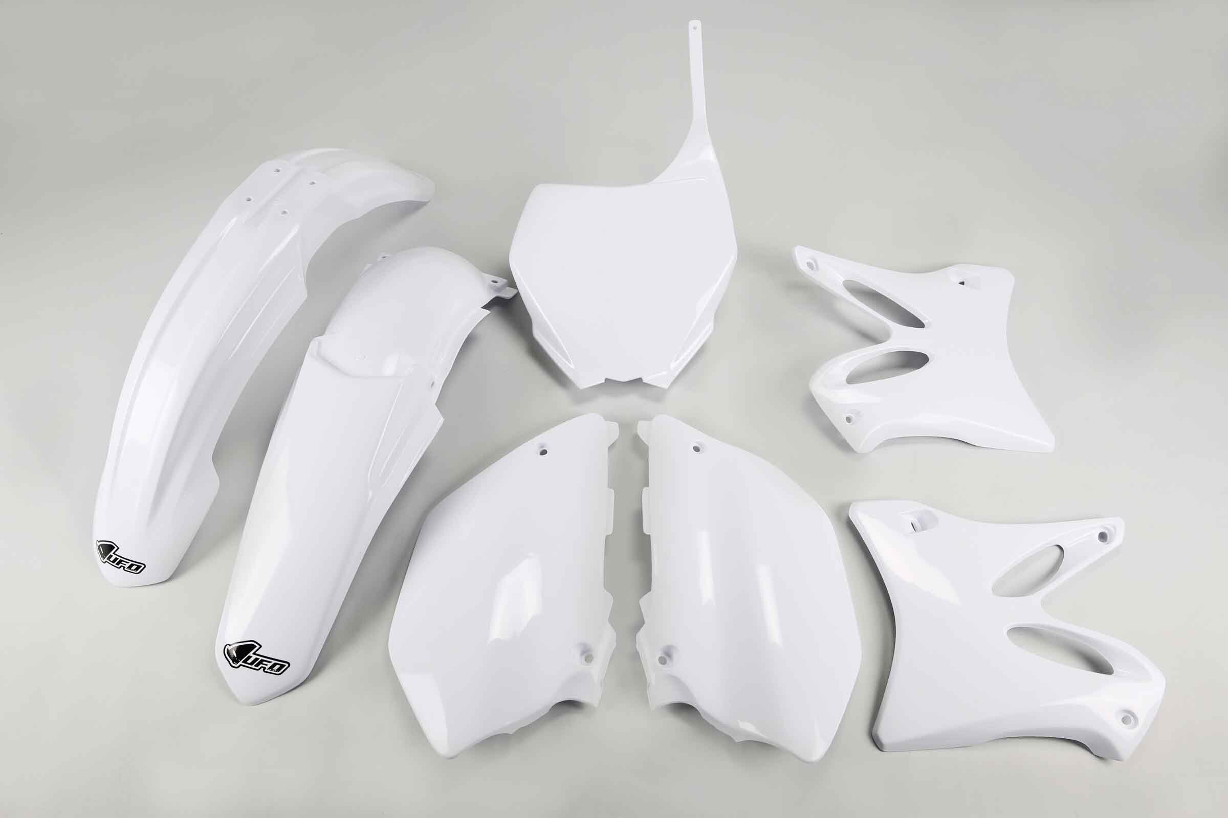 When your original dirt bike plastics need to be replaced, the UFO White Plastic Kit replacement plastics are an affordable, more durable option and are built to exceed original specifications.