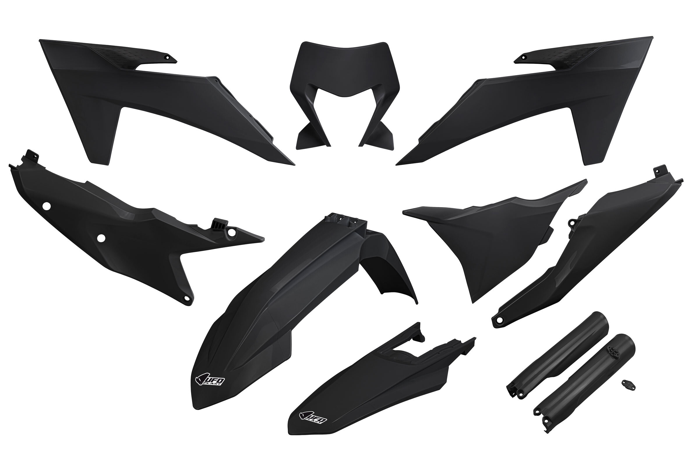 When your original dirt bike plastics need to be replaced, the UFO Black Plastic Kit replacement plastics are an affordable, more durable option and are built to exceed original specifications.