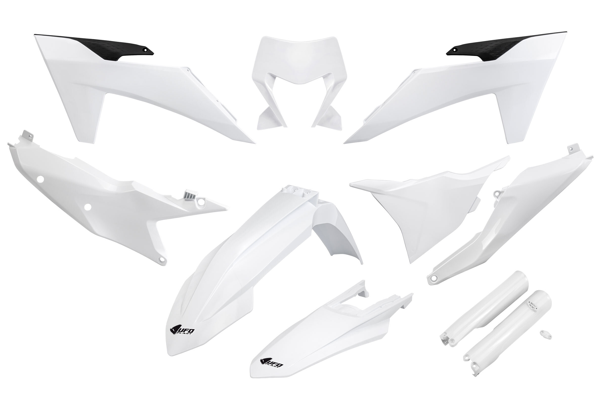 When your original dirt bike plastics need to be replaced, the UFO White Plastic Kit replacement plastics are an affordable, more durable option and are built to exceed original specifications.