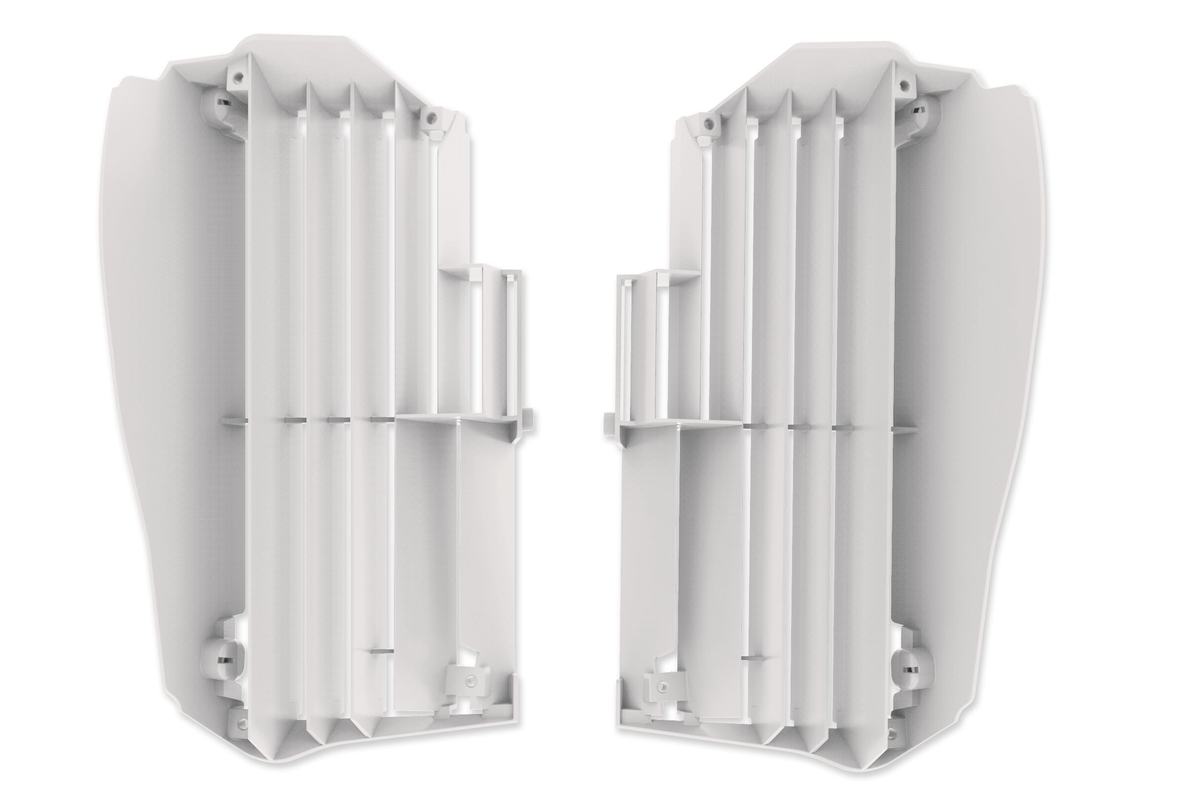 When your original dirt bike plastics need to be replaced, the Polisport White Radiator Louvers replacement plastics are an affordable, more durable option and are built to exceed original specifications.