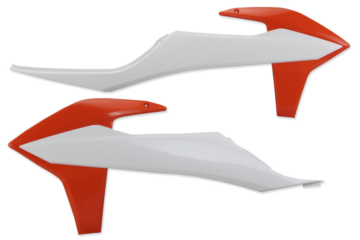 Upgrade your bike's appearance and performance with Polisport White 20, Orange Radiator Shroud Set replacement plastic. Ride confidently, knowing you've got a reliable and stylish Radiator Shroud Set that can withstand the toughest off-road adventures!