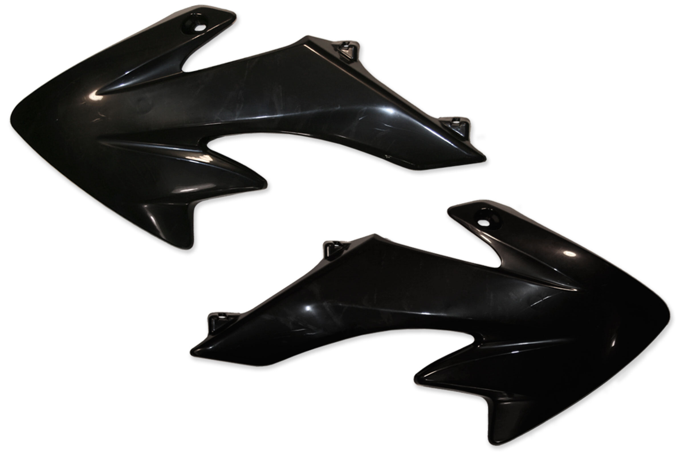 When your original dirt bike plastics need to be replaced, the UFO Black Radiator Shroud Set replacement plastics are an affordable, more durable option and are built to exceed original specifications.