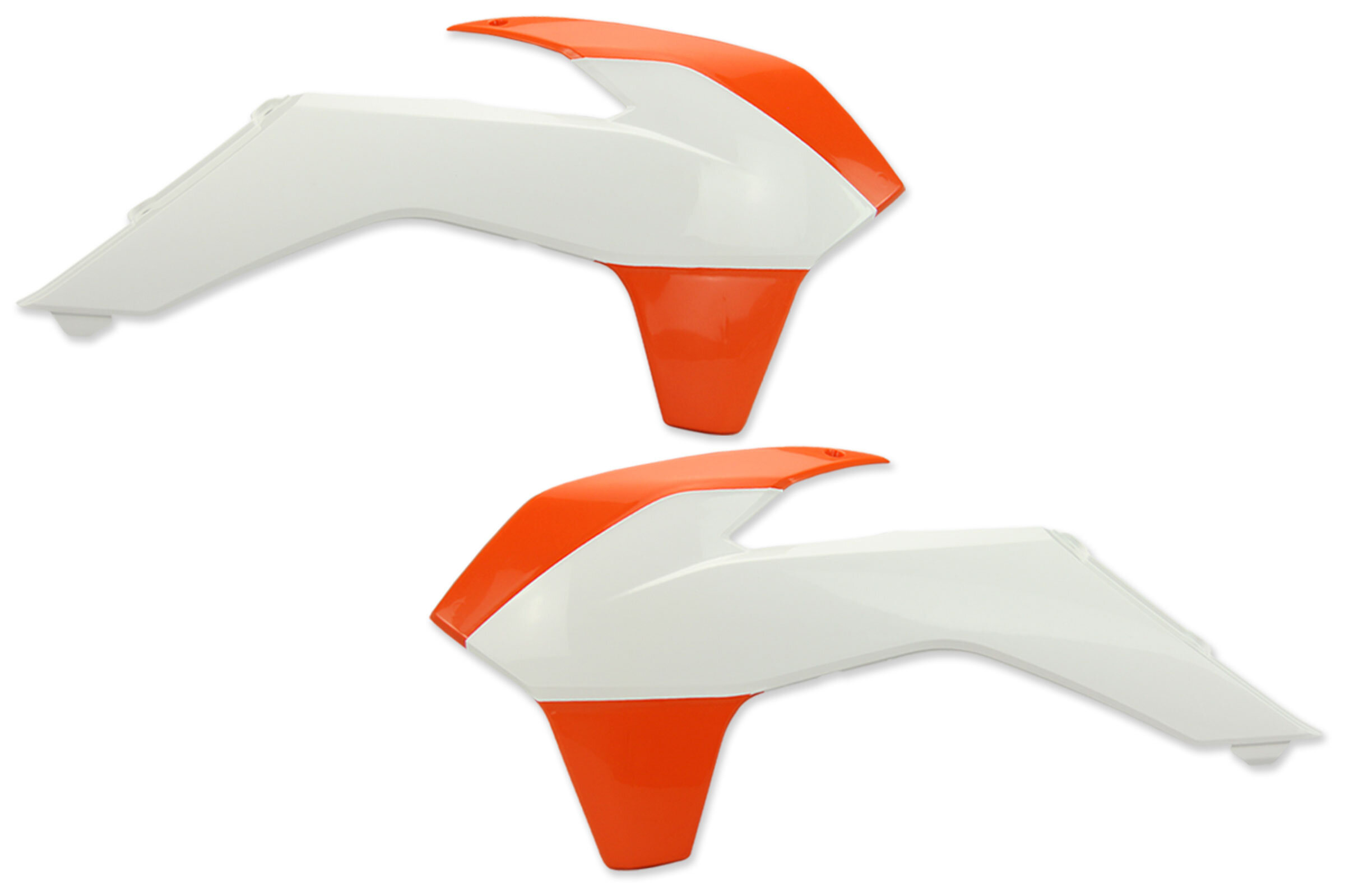 Polisport White / Orange Radiator Shroud Set for KTM: EXC125 (2016), EXC200 (2016), EXC250 (2016), EXC250F (2014-2016), EXC300 (2014, 2016), EXC350F (2014-2016), EXC450 (2014-2016), EXC500 (2014-2016), SX125 (2013-2015), SX150 (2013-2015), SX250 (2013-2016), SXF250 (2013-2015), SXF350 (2...and more