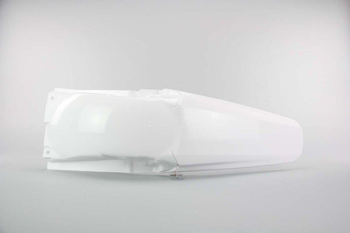 When your original dirt bike plastics need to be replaced, the UFO White Rear Fender replacement plastics are an affordable, more durable option and are built to exceed original specifications.