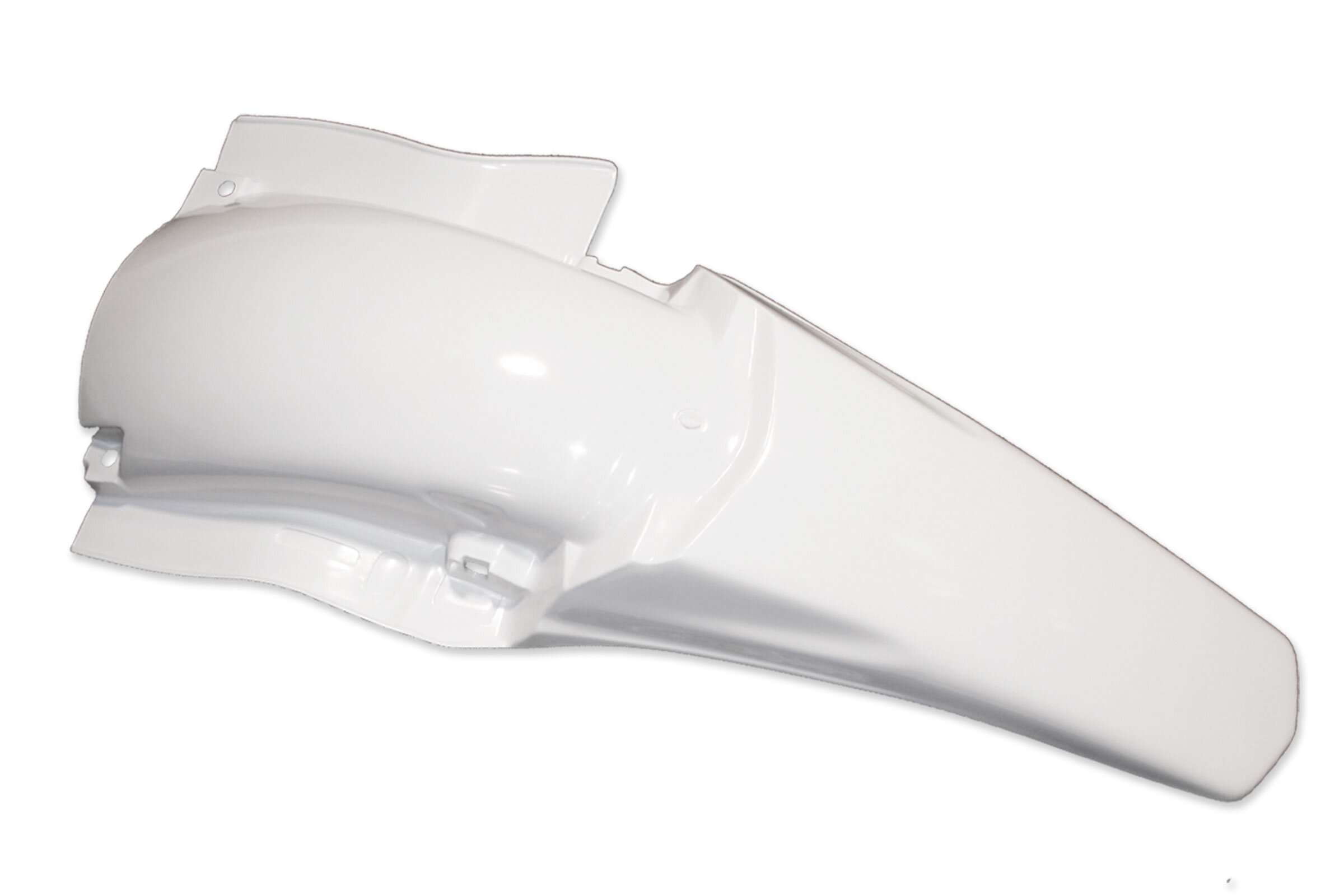 When your original dirt bike plastics need to be replaced, the UFO White Rear Fender replacement plastics are an affordable, more durable option and are built to exceed original specifications.