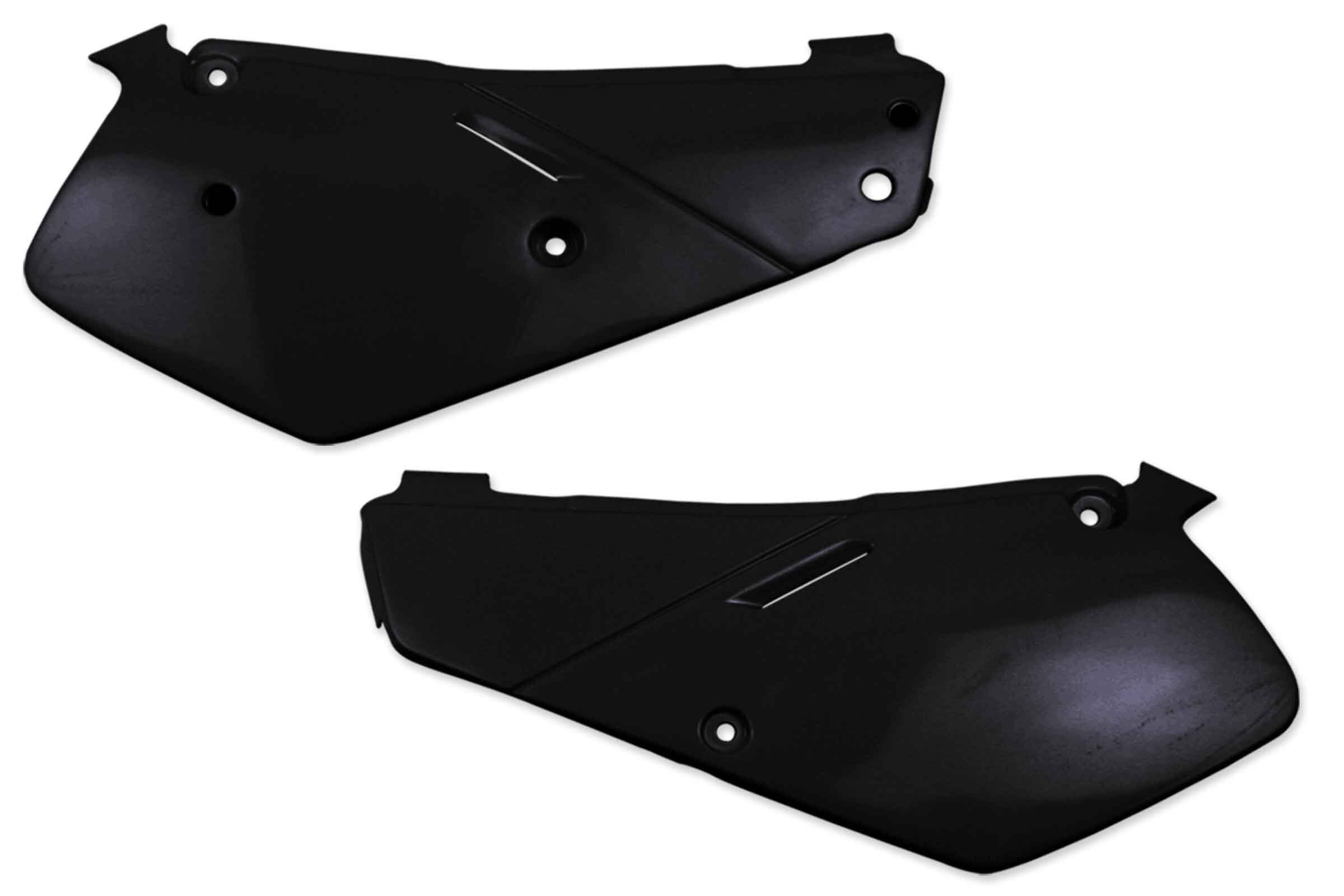 When your original dirt bike plastics need to be replaced, the UFO Black Restyled Side Number Plates replacement plastics are an affordable, more durable option and are built to exceed original specifications.