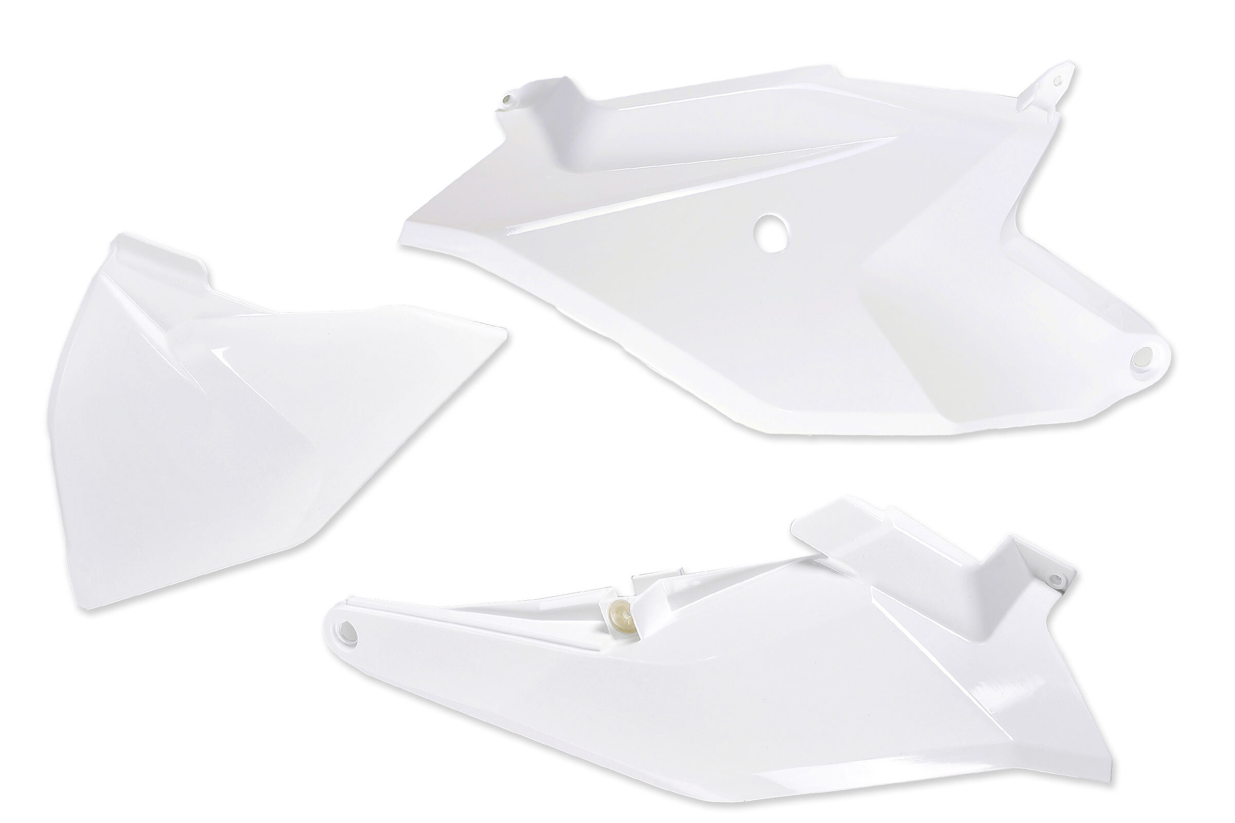 When your original dirt bike plastics need to be replaced, the UFO White 20 Side Number Plates replacement plastics are an affordable, more durable option and are built to exceed original specifications.