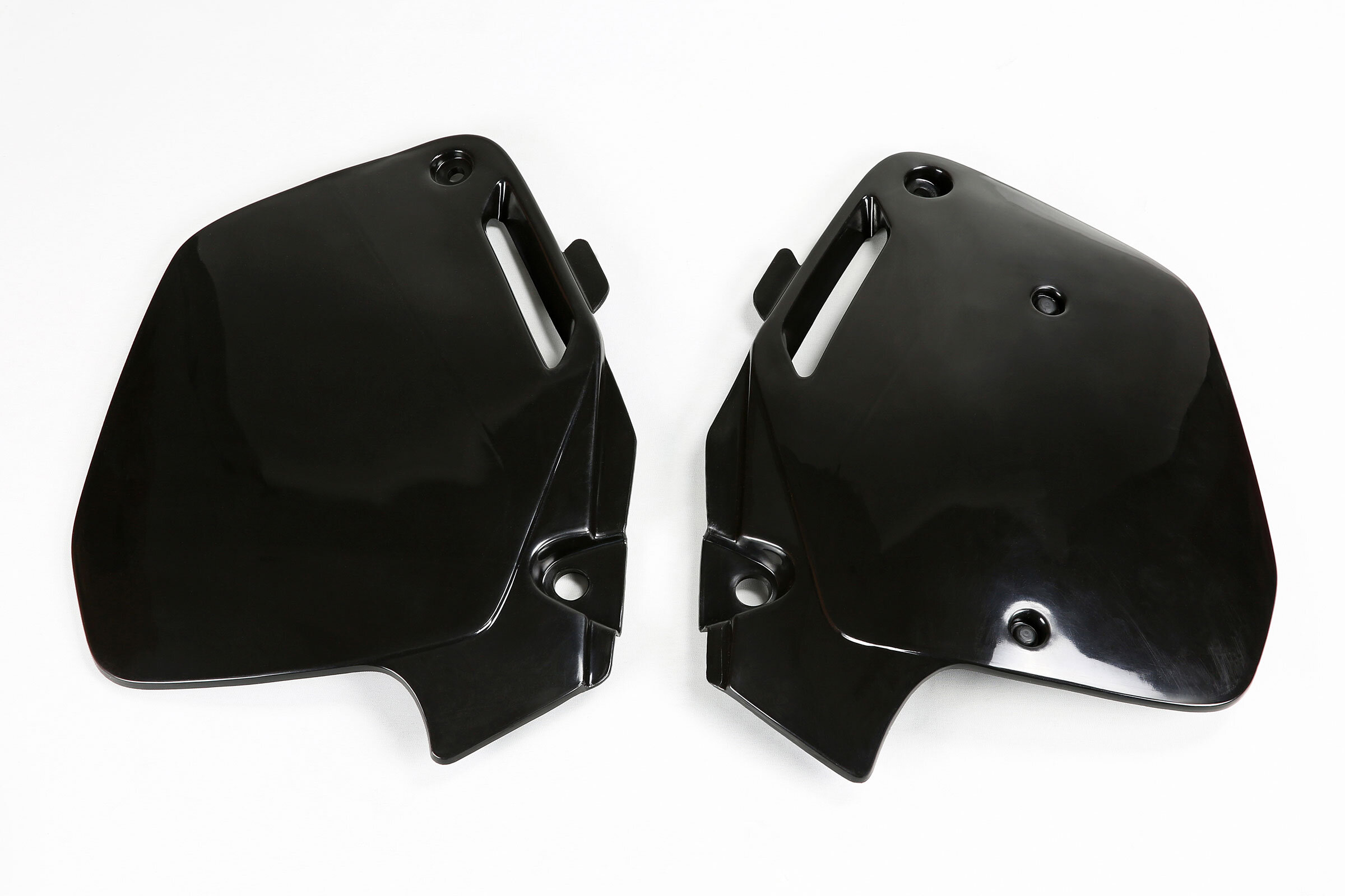 When your original dirt bike plastics need to be replaced, the UFO Black Side Number Plates replacement plastics are an affordable, more durable option and are built to exceed original specifications.
