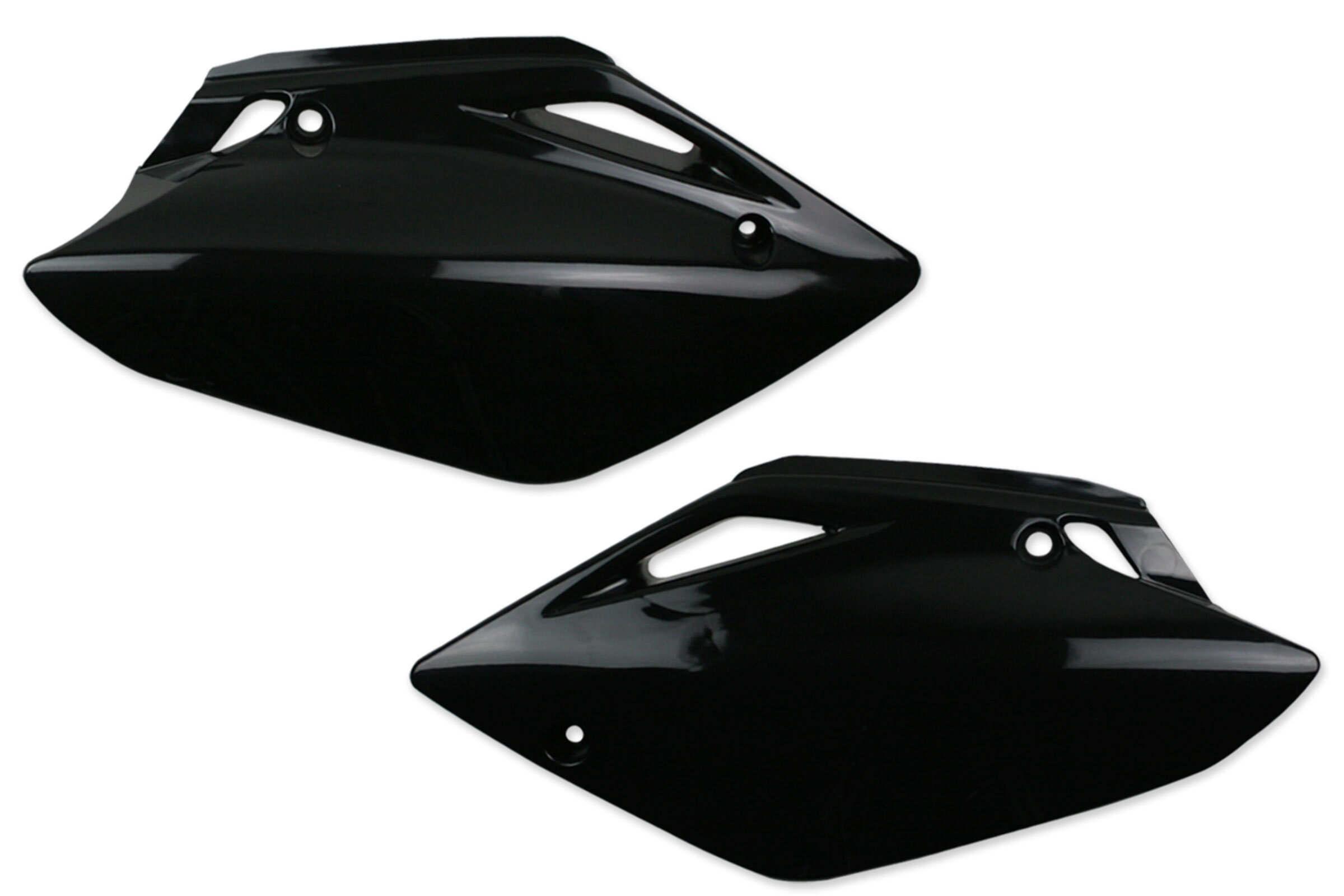 When your original dirt bike plastics need to be replaced, the UFO Black Side Number Plates replacement plastics are an affordable, more durable option and are built to exceed original specifications.