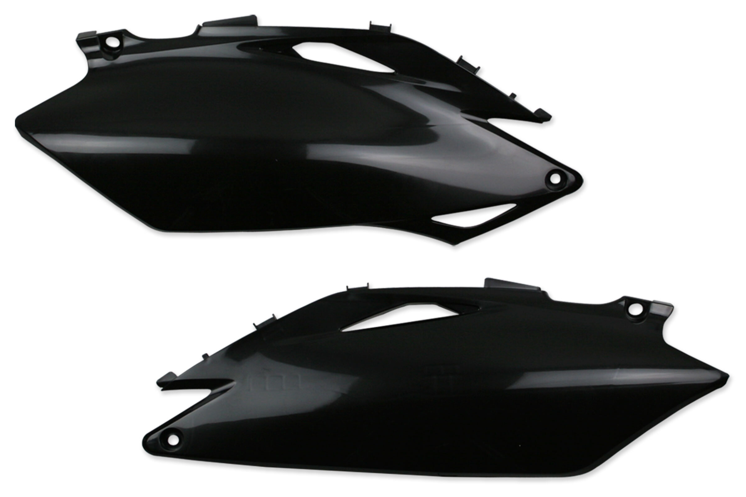 When your original dirt bike plastics need to be replaced, the UFO Black Side Number Plates replacement plastics are an affordable, more durable option and are built to exceed original specifications.
