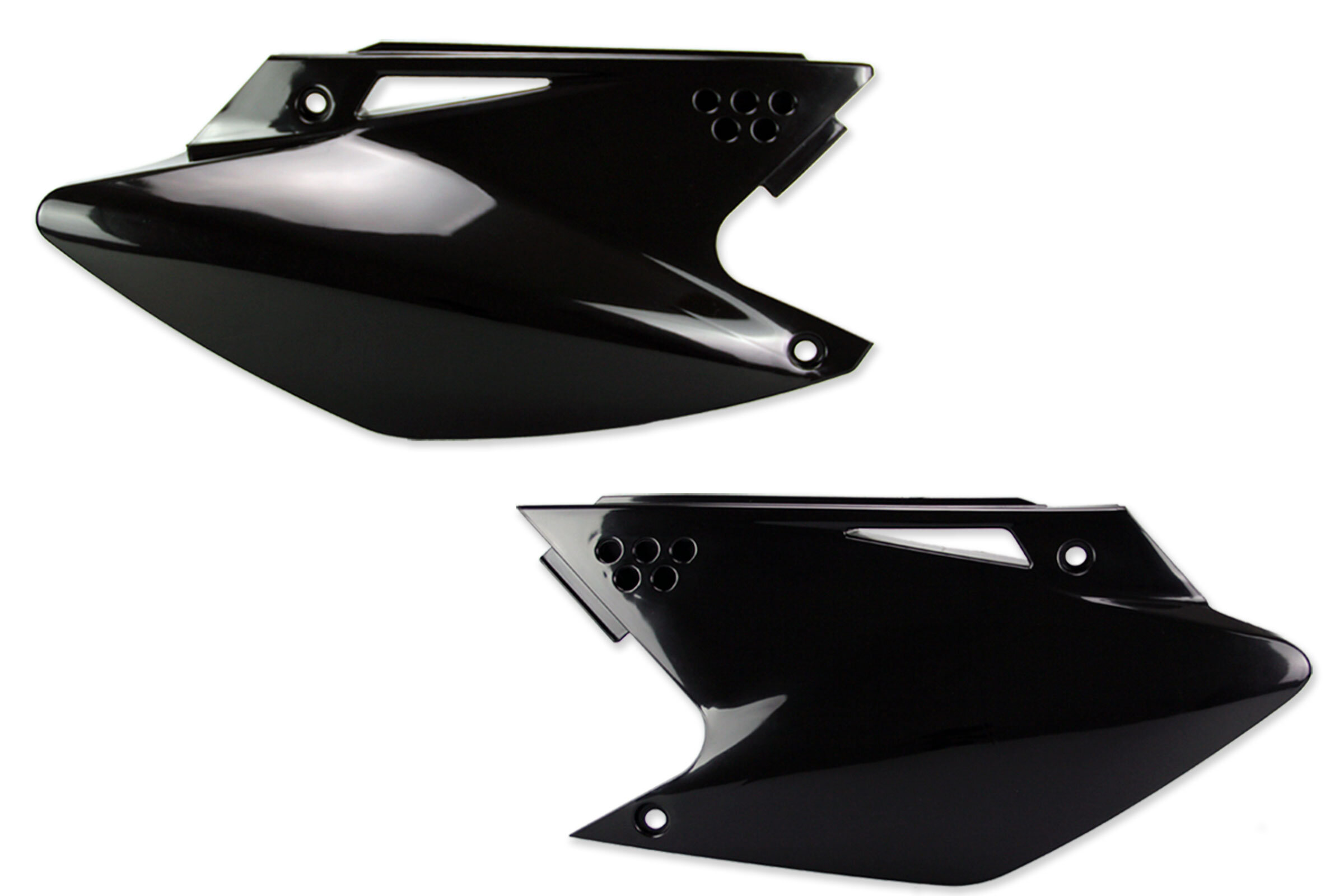 When your original dirt bike plastics need to be replaced, the Polisport Black Side Number Plates replacement plastics are an affordable, more durable option and are built to exceed original specifications.